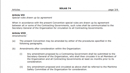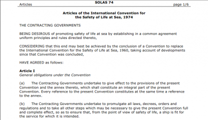 List of Amendments SOLAS 74 Protocol of 1988 Chapter I General provisions Chapter II-1 Construction – Structure, subdivision and stability, machinery and electrical installations Chapter II-2 Construction – Fire protection, fire detection and fire extinction Chapter III Life-saving appliances and arrangements Chapter IV Radiocommunications Chapter V Safety of navigation Chapter VI Carriage of cargoes and oil fuels Chapter VII Carriage of dangerous goods Chapter VIII Nuclear ships Chapter IX Management for the safe operation of ships Chapter X Safety measures for high-speed craft Chapter XI-1 Special measures to enhance maritime safety Chapter XI-2 Special measures to enhance maritime security Chapter XII Additional safety measures for bulk carriers Appendix Certificates Part 1 - Certificates Part 2