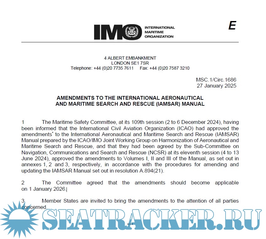 Amendments to IAMSAR 2025-MSC.1 / Circ 1686