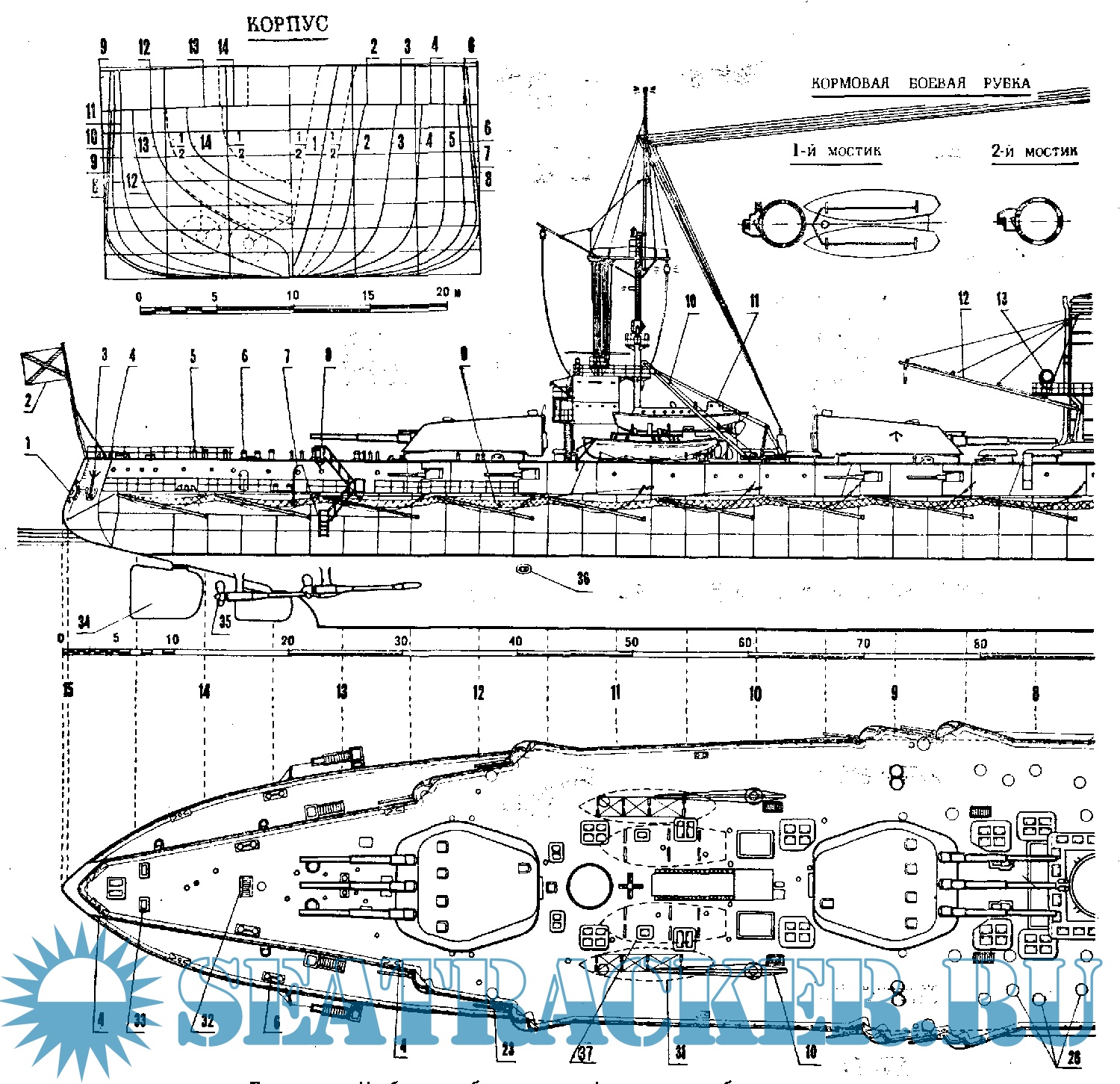 Описание: 6 листов чертежей линейного корабля Петропавловск