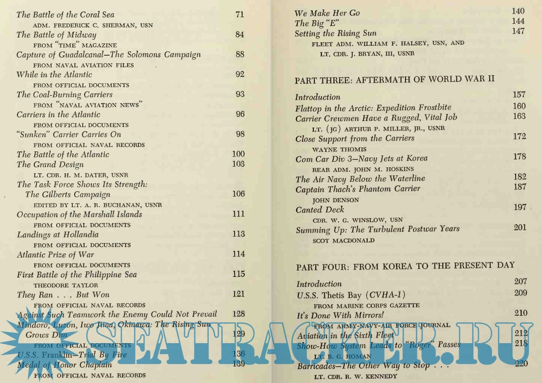 Year: 1965 Language: English Author: Joseph A. Skiera Genre: Historical Publisher: Franklin Watts, Inc. Format: PDF Quality: Scanned pages Pages count: 360 Description: Here is the story of the pioneer carriers — the Langley, Lexington, and Saratoga; the evolution of the catapult; the first heroic attack on the Japanese mainland by planes launched from the Hornet; the saga of carrier feats in the battles of Midway, the Coral Sea, and the Atlantic; the ordeal of the Franklin; the tale of the most famous carrier of all — the Big "E"; the story of how Captain Thach's "phantom carrier" harassed the North Koreans; and the dramatic use of carriers in the 1962 Cuban crisis.
