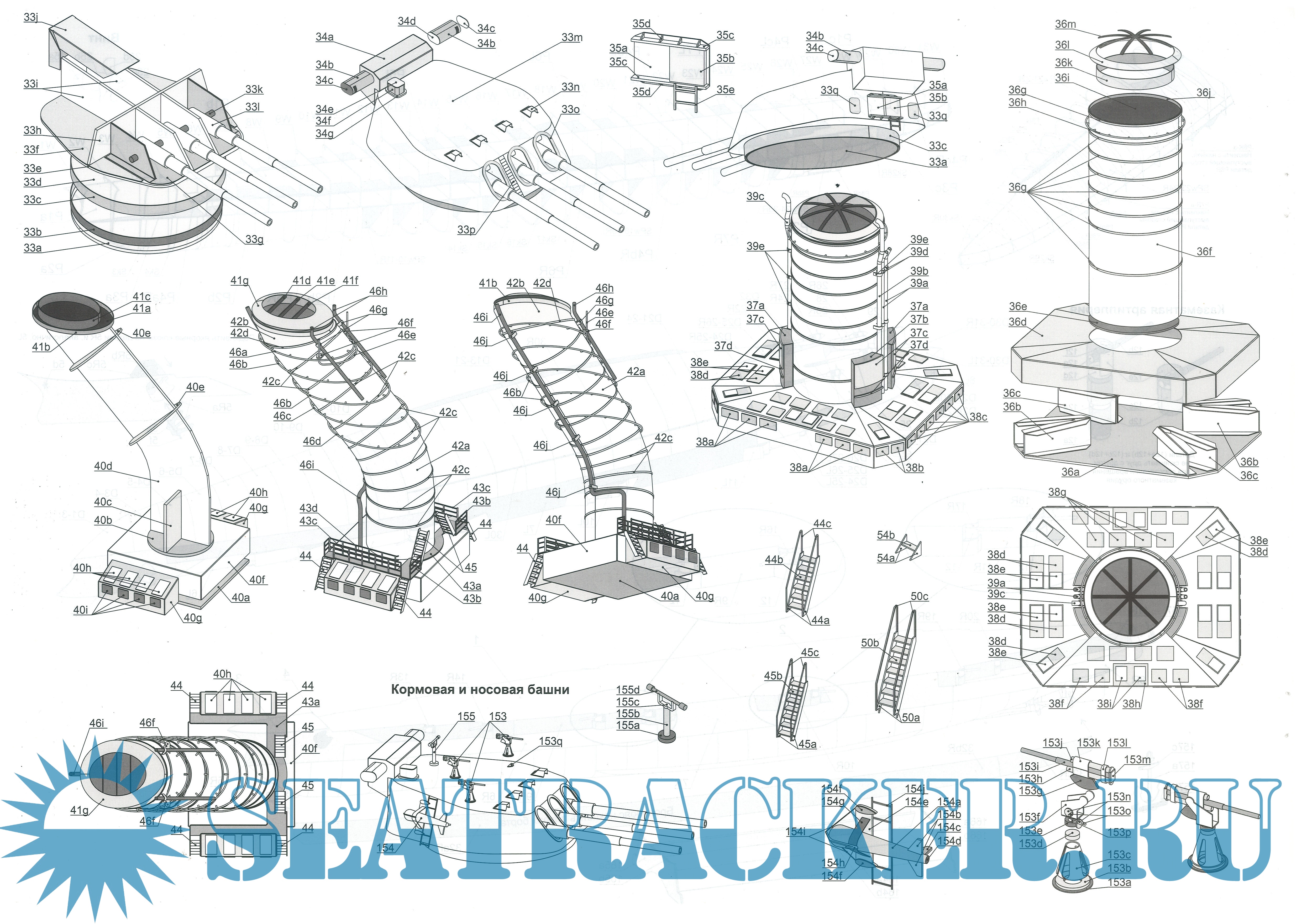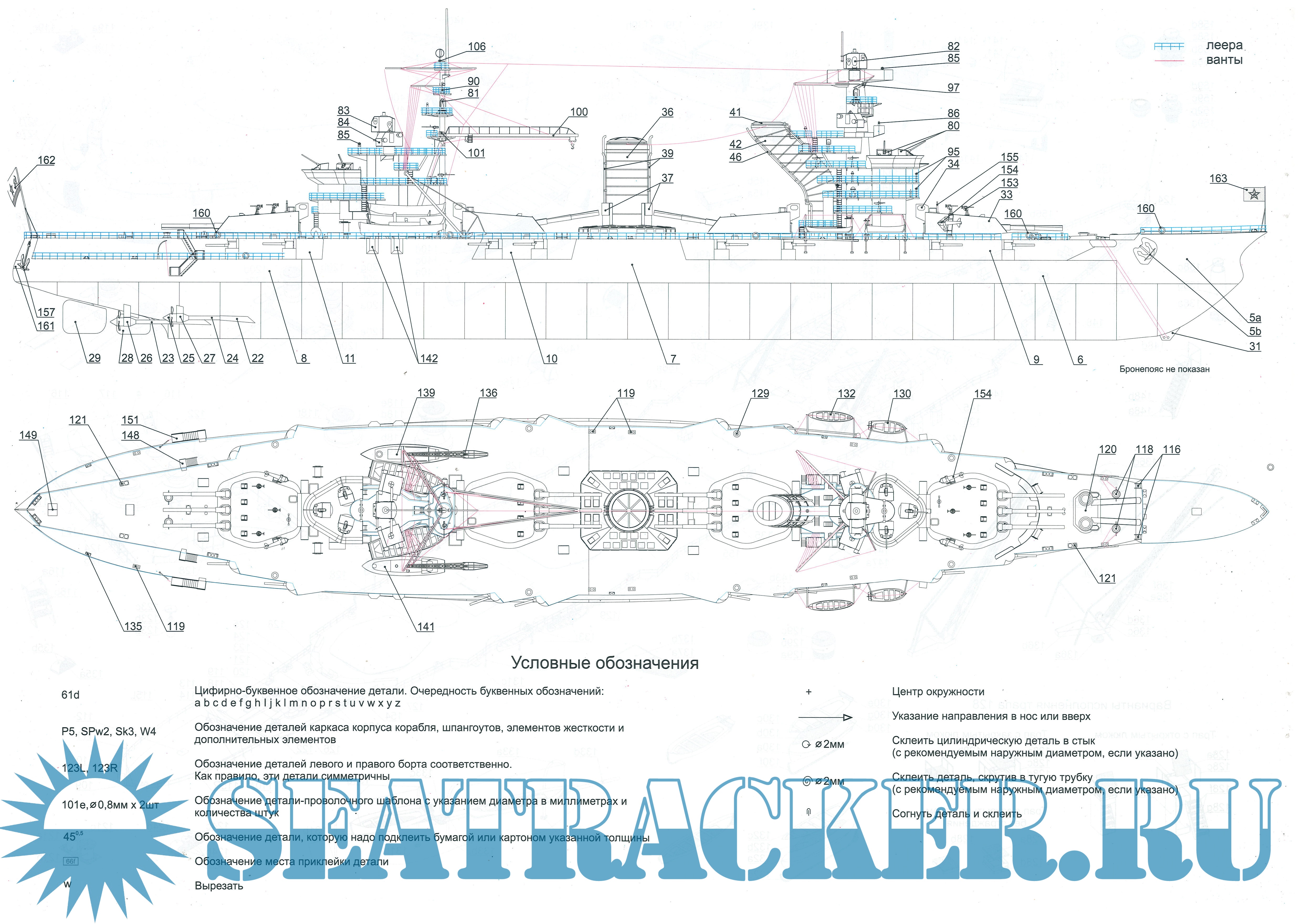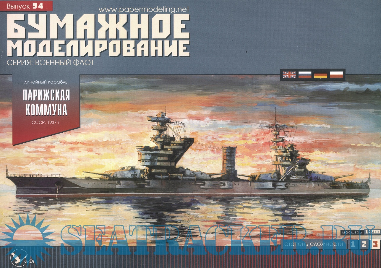 40 листов цветных выкроек и описаний для изготовления бумажной модели линкора "Парижская коммуна" по состоянию на 1937 год в масштабе 1:200