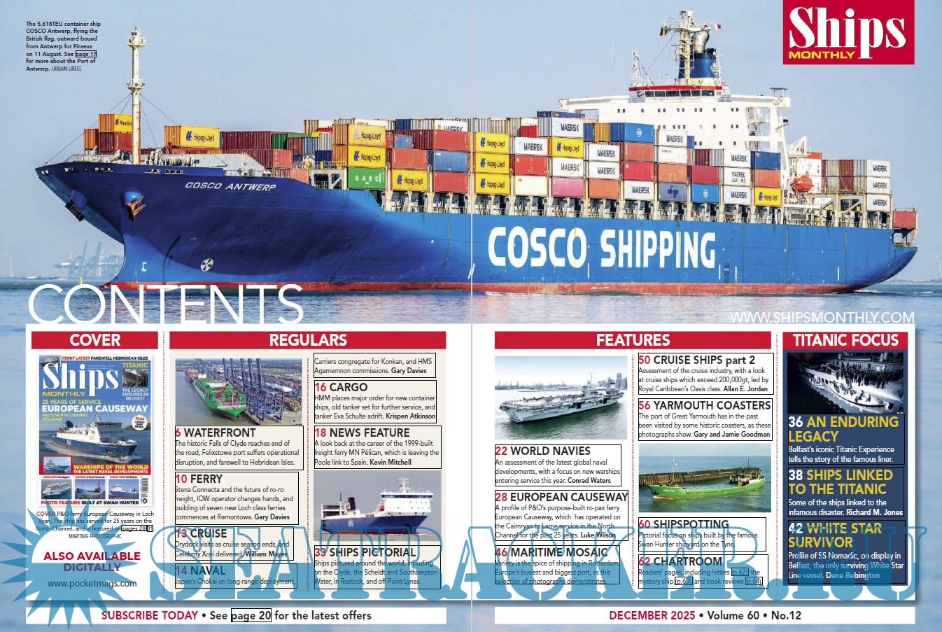 Year: 2025 Language: English Author: Editor: Nicholas Leach Genre: Periodical publication Edition: 2025-12 Format: PDF Quality: eBook Pages count: 68 Description: Ships Monthly is the world's leading international shipping magazine. Ships Monthly provides news and features for ship enthusiasts and maritime professionals, including reports on the ferry, cruise, new building and cargo ship scene as well as navies across the world.The latest issue of Ships Monthly is out now, and is packed with all the usual news and features, including outstanding articles and features.