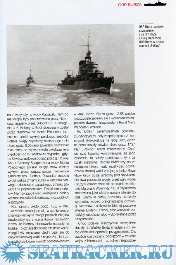 Zamowienie, projekt i budowa ORP Burza Charakterystyka techniczna Sluzba przedwojenna ORP Burza Poczatek wojny dla ORP Burza Burza u boku Royal navy, 1939-1940 Bibliografia wybrana Modelle niszczyciela ORP Burza. Cz. 1 - Modele kartonowe