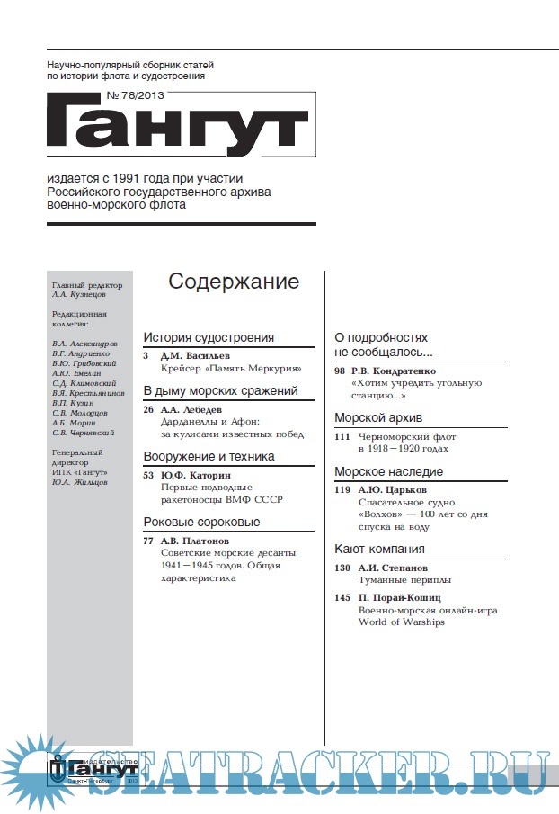 Год выпуска: 2013 Язык: Русский Автор: группа авторов Жанр: Периодическое издание (журнал) Формат: PDF Качество: Изначально компьютерное (eBook) Количество страниц: 156 Описание: Научно-популярный сборник статей по истории флота и судостроения