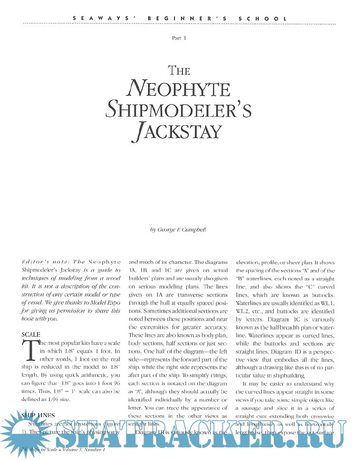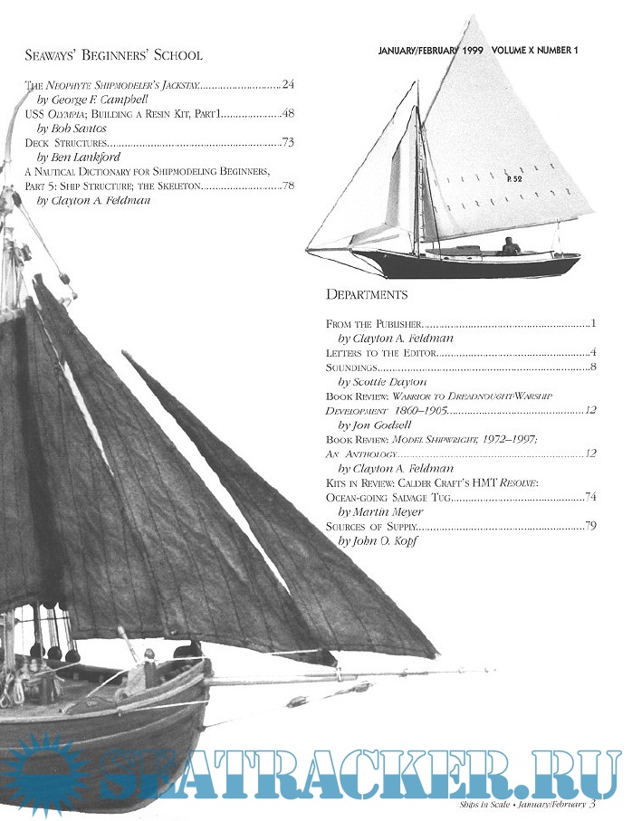 Year: 1999 Language: English Author: Scottie Dayton (Editor) Genre: Periodical publication Edition: 1999-1 Format: PDF Quality: eBook Pages count: 84 Description: Seaway is the home port for Seaways Ships in Scale magazine, the leading workshop and research magazine for the ship modeler. In the magazine we explore all levels of modeling experience, all types of ships, all kinds of models, all historical eras and all construction materials