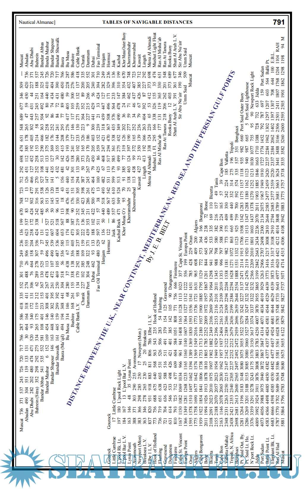 - V Navigable Distance Tables giving a world-wide coverage of total distances from the principal ports of Britain, U.S.A. and Canada, to all important ports of the world.
