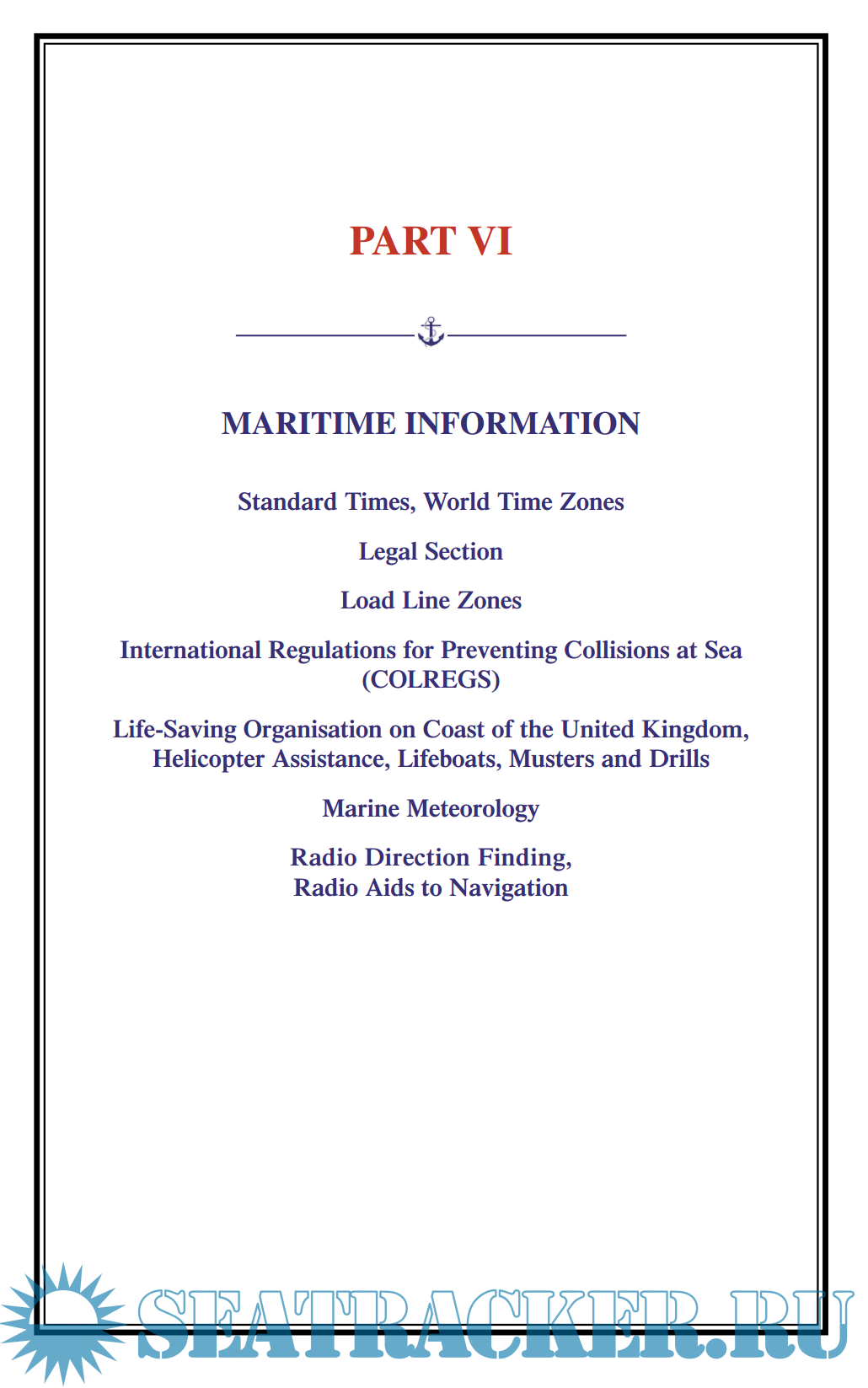 - VI Maritime Information including Legal, Technical and General.
