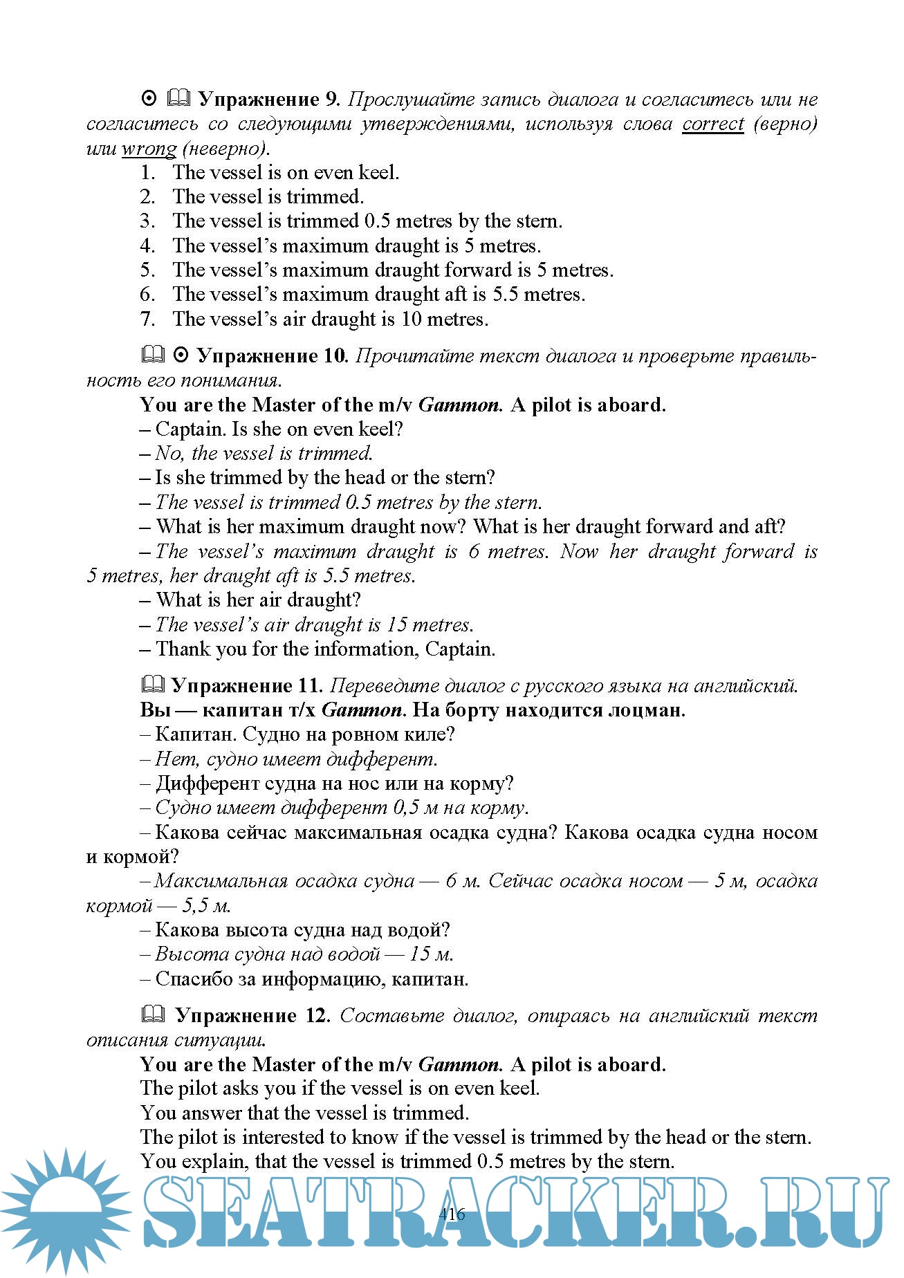 Год выпуска: 2023 Язык: Русский Автор: Вохмянин С. Н. Жанр: Учебное пособие для вузов Издательство: «Издательство Лань» Издание: 3-е ISBN: 9785507472567 Формат: PDF, MP3 Качество: Изначально компьютерное (eBook) Количество страниц: 490 Аудио кодек: MP3 Аудио: MPEG 44.1 KHz x 128 Kbps Aудио Продолжительность: ~ 990 мин Описание: Требования к подготовке моряков в области английского языка определены «Международной конвенцией о подготовке и дипломировании моряков и несении вахты», принятой с поправками ИМО в 1995 г. (ПДНВ 78/95). Особое место среди этих требований занимает умение пользоваться Стандартным морским навигационным словарем-разговорником (СМНСР), который в 2001 году был заменен на более объемные «Стандартные фразы ИМО для общения на море», однако составил их обязательную часть. В отличие от имеющихся публикаций, которые посвящены этой теме, но носят прежде всего справочный характер, настоящее учебное пособие ставит перед собой цель научить активно пользоваться Словарем, для чего разработана система языковых и речевых упражнений. К упражнениям в конце книги даны ключи. Издание предназначено для всех судоводителей командного состава, которые должны соответствовать требованиям конвенции ПДНВ 78/95, для курсантов высших учебных заведений водного транспорта очного и заочного обучения по специальности «Судовождение», а также для курсов повышения квалификации и для самостоятельного изучения. Доп. информация: Текст СМНСР и большинство упражнений озвучены (объем ~ 990 мин) и прилагаются в формате mp3. Аудиопрактикум: https://seatracker.info/viewtopic.php?t=67919 :