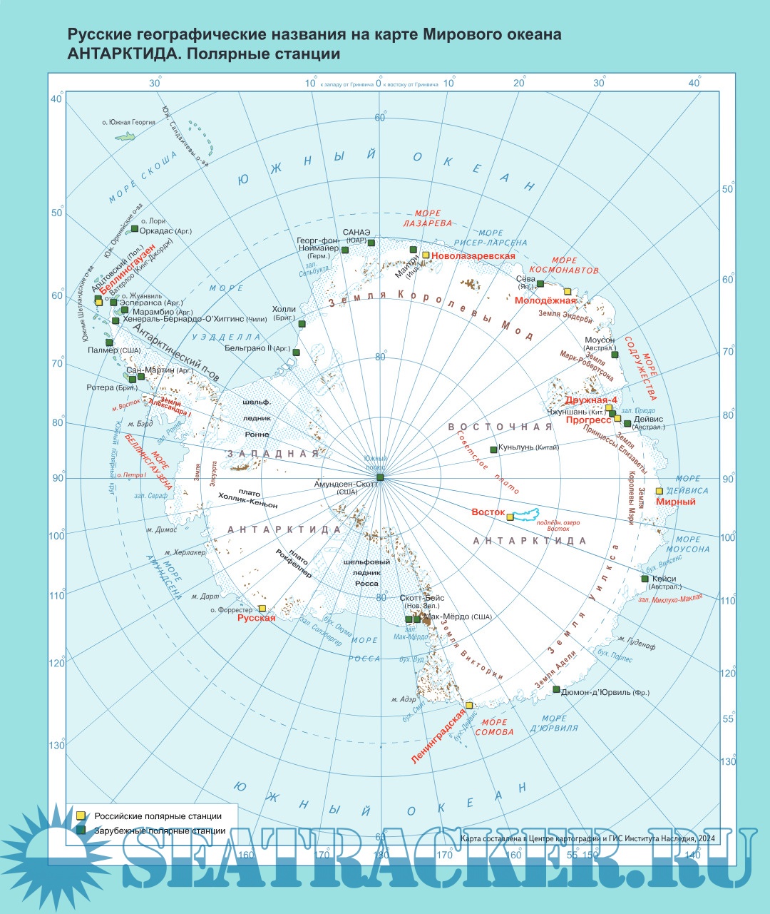 Русские географические названия на карте мирового океана