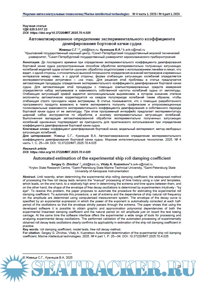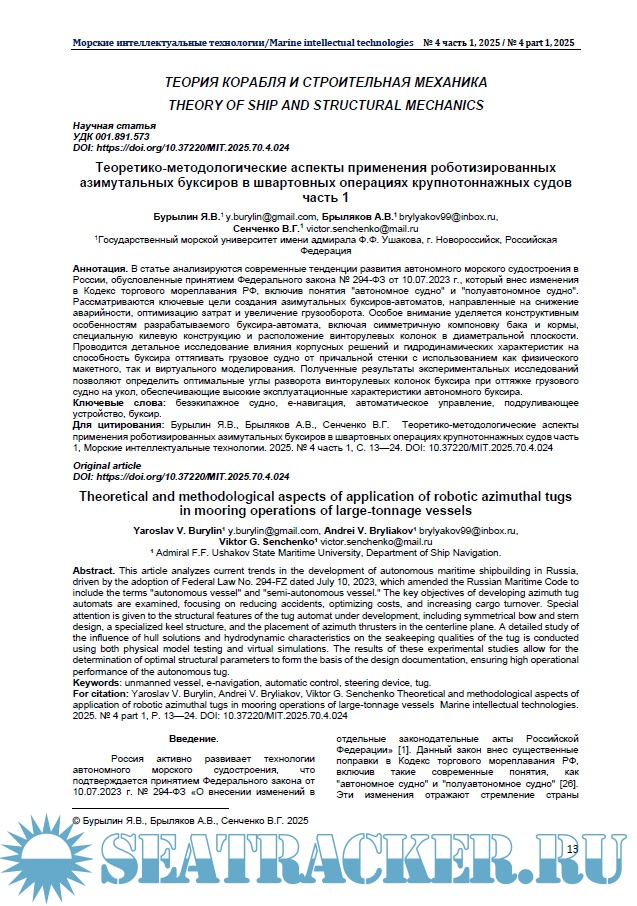 Морские интеллектуальные технологии 2025 № 4 часть 1