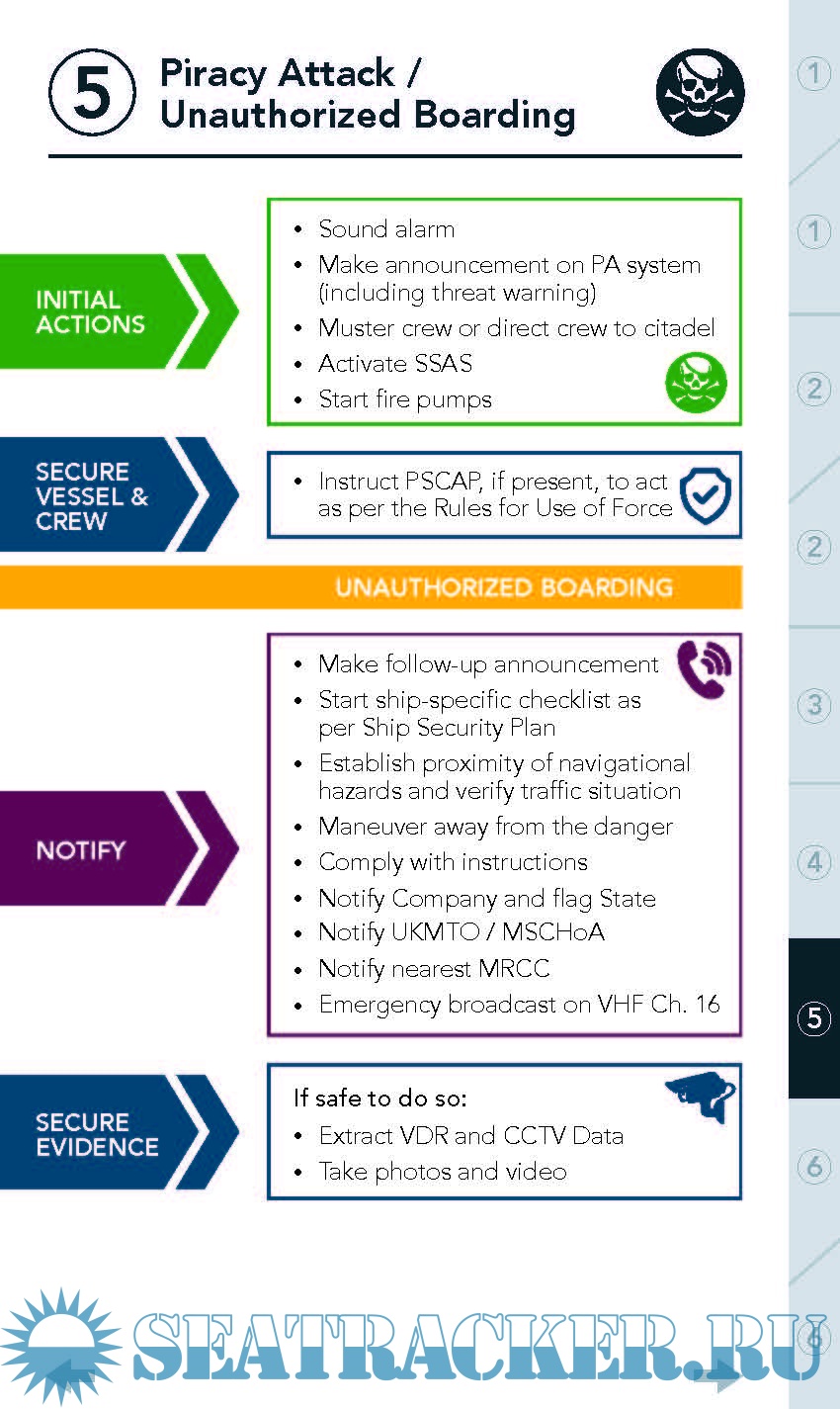 Year: 2024 Language: English Author: JMIC Genre: Other Publisher: Joint Maritime Information Center (JMIC) Edition: December 2024 Format: PDF Quality: eBook Pages count: 16 Description: The Joint Maritime Information Center has released an updated set of quick reference 'bridge cards’ for the Middle East region. The cards cover a wide range of potential security events in this region and can help masters and crews prepare for and respond to incidents. Bridge cards are quick reference guides that aim to support seafarers during times of tension caused by piracy attacks or other security threats. They summarize and present important information in a clear, unambiguous, and easy to perceive manner, including reporting routines, contact details of regional reporting centers, how to detect a suspicious approach or attack early on, as well as recommended actions that can be taken in response to a number of malign activity situations. While the cards are complementary to the information provided in a ship’s own security plan, BMPs, and security charts, they can be a useful safety aide memoire for masters and crews to follow when transiting the high-risk areas. We therefore encourage ship operators and Masters to take the guidance provided in the above referenced bridge cards into consideration in circumstances where their vessels may be exposed to security risks. * The Master retains full Responsibility for the vessel’s action!