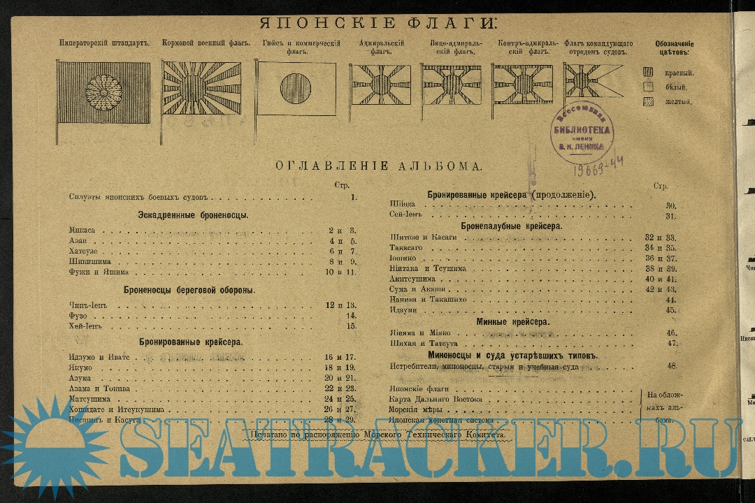 Японский военный флот. Альбом рисунков и чертежей судов, с указанием главных элементов и вооружения их