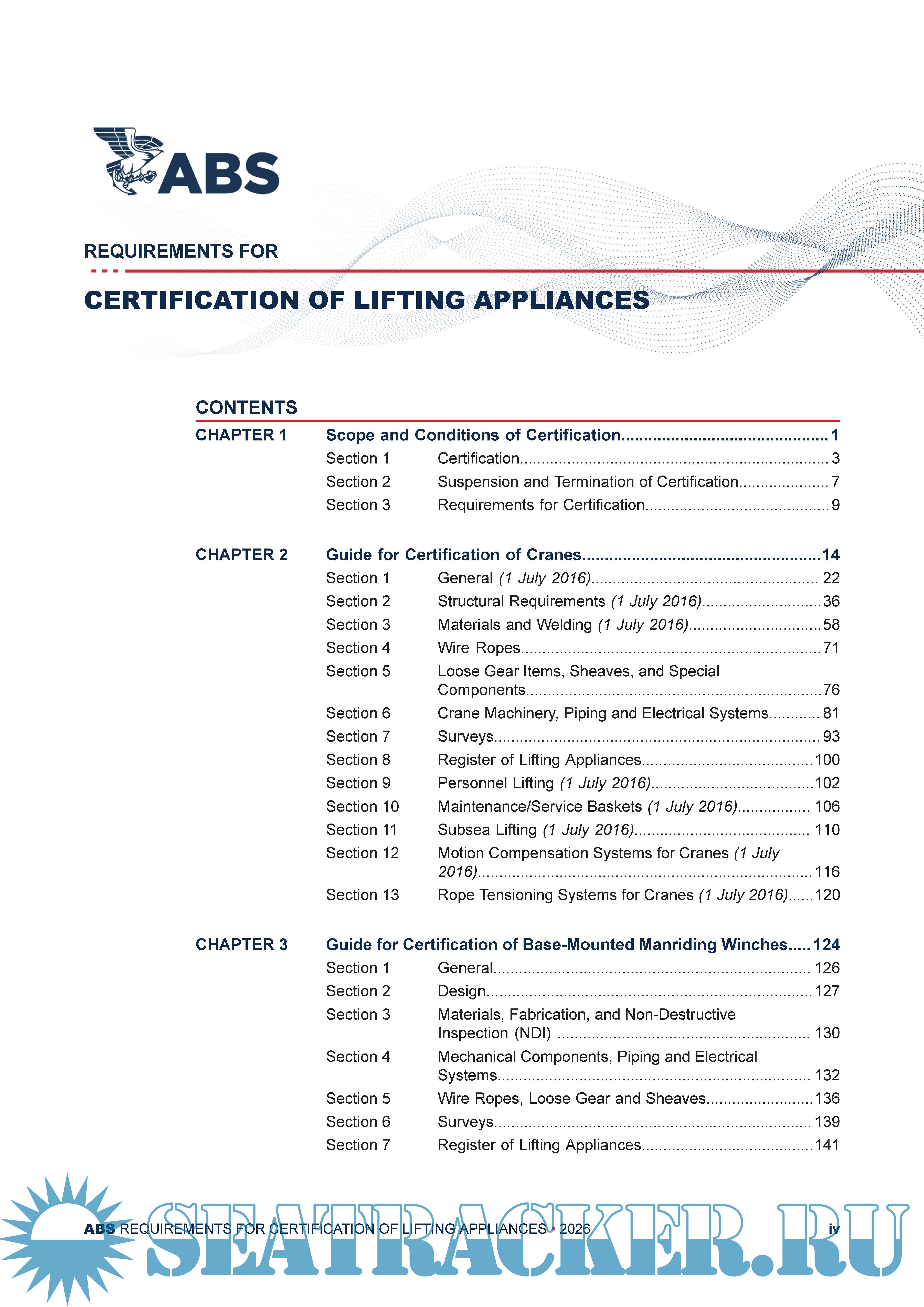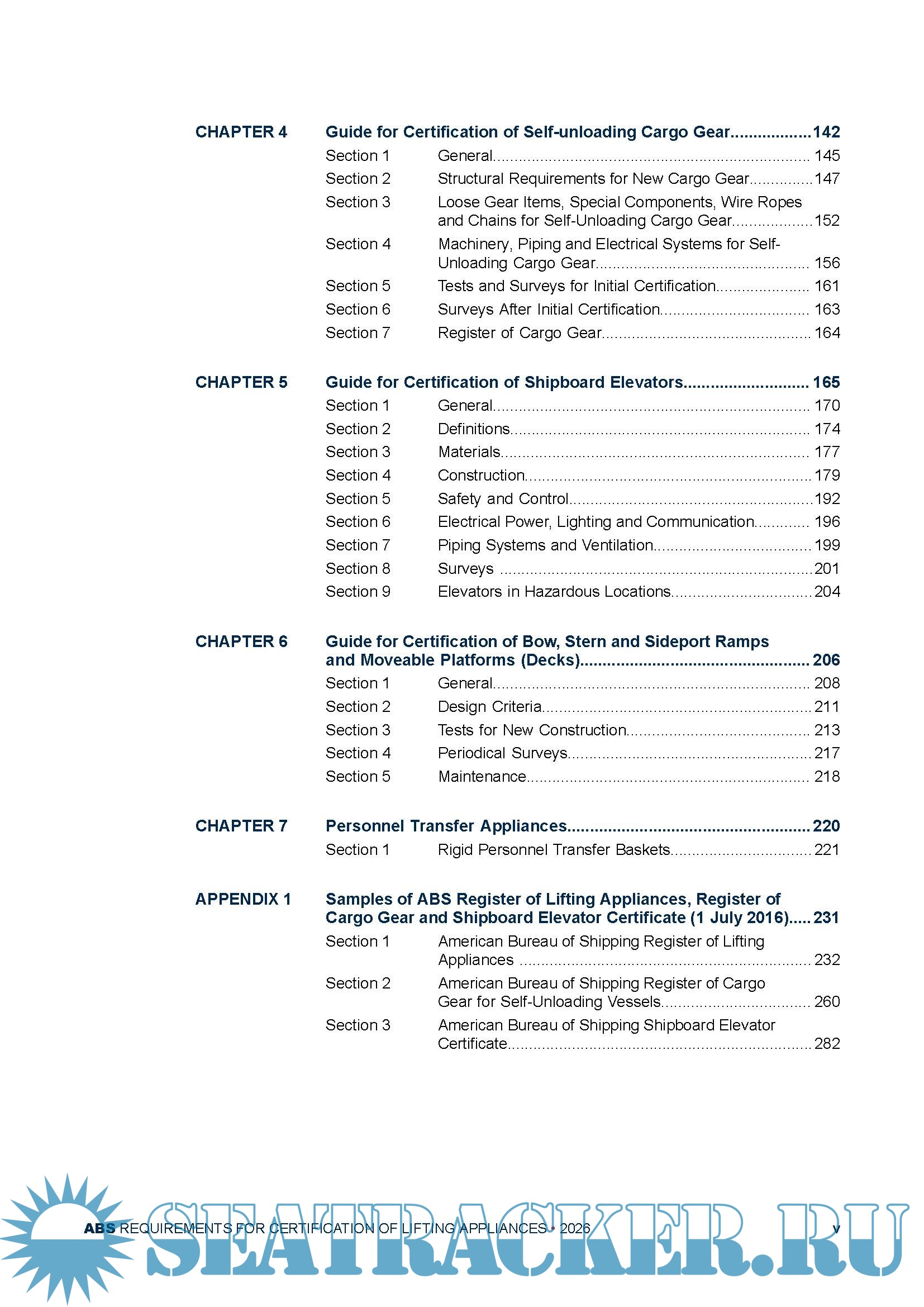 Description: The requirements in this Guide were first developed in 2006 consolidating requirements from ABS Rules and Guides such as Guide for Certification of Cranes, Guide for Self-Unloading Cargo Gear on Great Lakes, Guide for Certification of Cargo Gear on Merchant Vessels, Guide for Certification of Elevators and Guide for Certification of Stern, Bow and Sideport Ramps and Moveable Platforms (Decks). The Guide has since been updated in 2007, 2014, 2015, 2017, 2018, 2019-2025.
