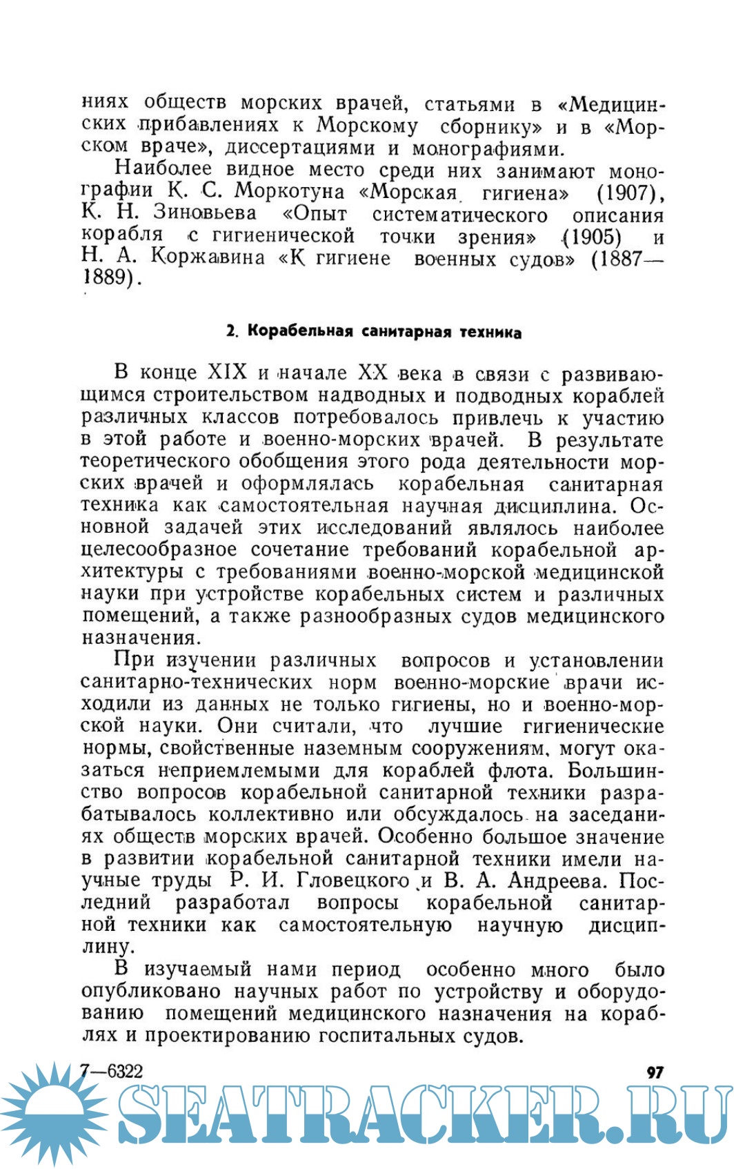 Описание: Книга содержит основные сведения по разработке и освоению тактики боя новых типов кораблей русского военно-морского флота. В связи с быстрым техническим прогрессом изменились условия службы на флоте, потребовавшем разрешения новых проблем военно-морской гигиены. Из нее выделились — корабельная санитарная техника и физиология. Получила дальнейшее развитие и совершенствование тактика медицинской службы флота, военно-морская хирургия, военно-морская терапия, военно-морская эпидемиология и др. Об этом рассказывается в указанной книге. Она поможет широкому кругу советских медицинских работников, студентам медицинских институтов и училищ ознакомиться с историей отечественной военно-морской медицины второй половины XIX и начала XX века. Богатое наследие, оставленное морскими врачами этого периода представляет особенно большую ценность для советских морских врачей. Собранные в книге материалы окажут им практическую помощь в разрешении многих вопросов медицинского обеспечения современного военного и гражданского флота. В трудах Д.В. Мерцалова, К.С. Моркотуна, Н.И. Августовского, Я.И. Кефели, Л.А. Орбели, В.А. Андреева, Л.М. Старокадомского и других морских врачей, неоднократно упоминаемых в книге, содержится много актуальных идей и практических сведений, знание которых необходимо сегодня каждому морскому врачу.