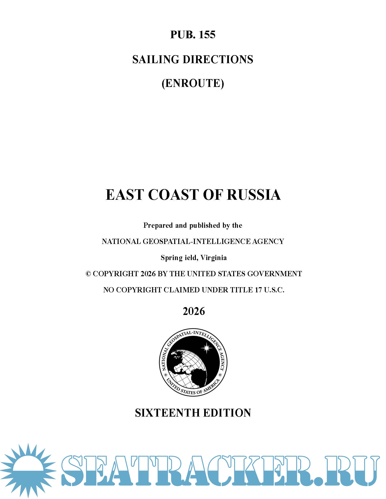 Year: 2026 Language: English Author: NGIA Genre: Documentation Publisher: National Geospatial Intelligence Agency Edition: 16th Format: PDF Quality: eBook Pages count: 236 Description: Pub. 155, Sailing Directions (Enroute) East Coast of Russia, Sixteenth Edition, 2026 is issued for use in conjunction with Pub. 120, Sailing Directions (Planning Guide) Pacific Ocean and Southeast Asia. The companion volumes are Pubs. 153, 154, 157, 158, and 159. Digital Charts 24 and 27 provide electronic chart coverage for the area covered by this publication. Electronic Nautical Chart Regions T3 and Z provide electronic chart coverage for the area covered by this publication. This publication has been corrected to 20 December 2025.