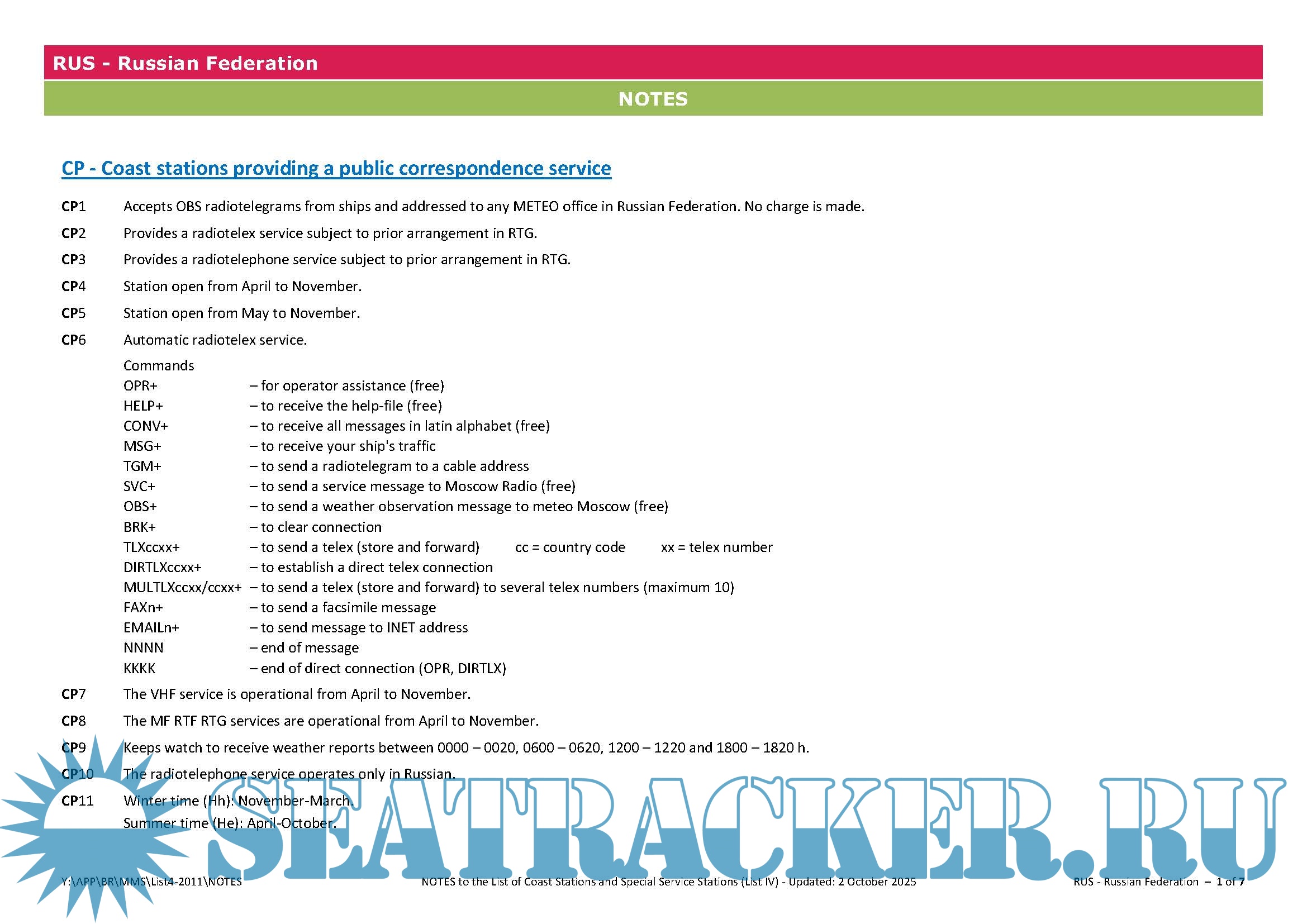 List of Coast Stations and Special Service Stations (List IV) Edition of 2025 (ITU Copyright 2025)