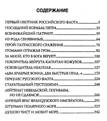 Среди героев книги: любимец Петра I; первый охотник русского флота: Конон Зотов и адмирал-каторжник Соймонов, освободители Бейрута и Неаполя капитан-лейтенанты Кожухов и Белли, легендарный Геркулес России капитан 1-го ранга Лукин, бесстрашные капитаны Юноны и Авось лейтенант Хвостов и мичман Давыдов, первооткрыватель Новой Земли штурман Пахтусов, выдающийся флотоводец адмирал Нахимов и другие.
