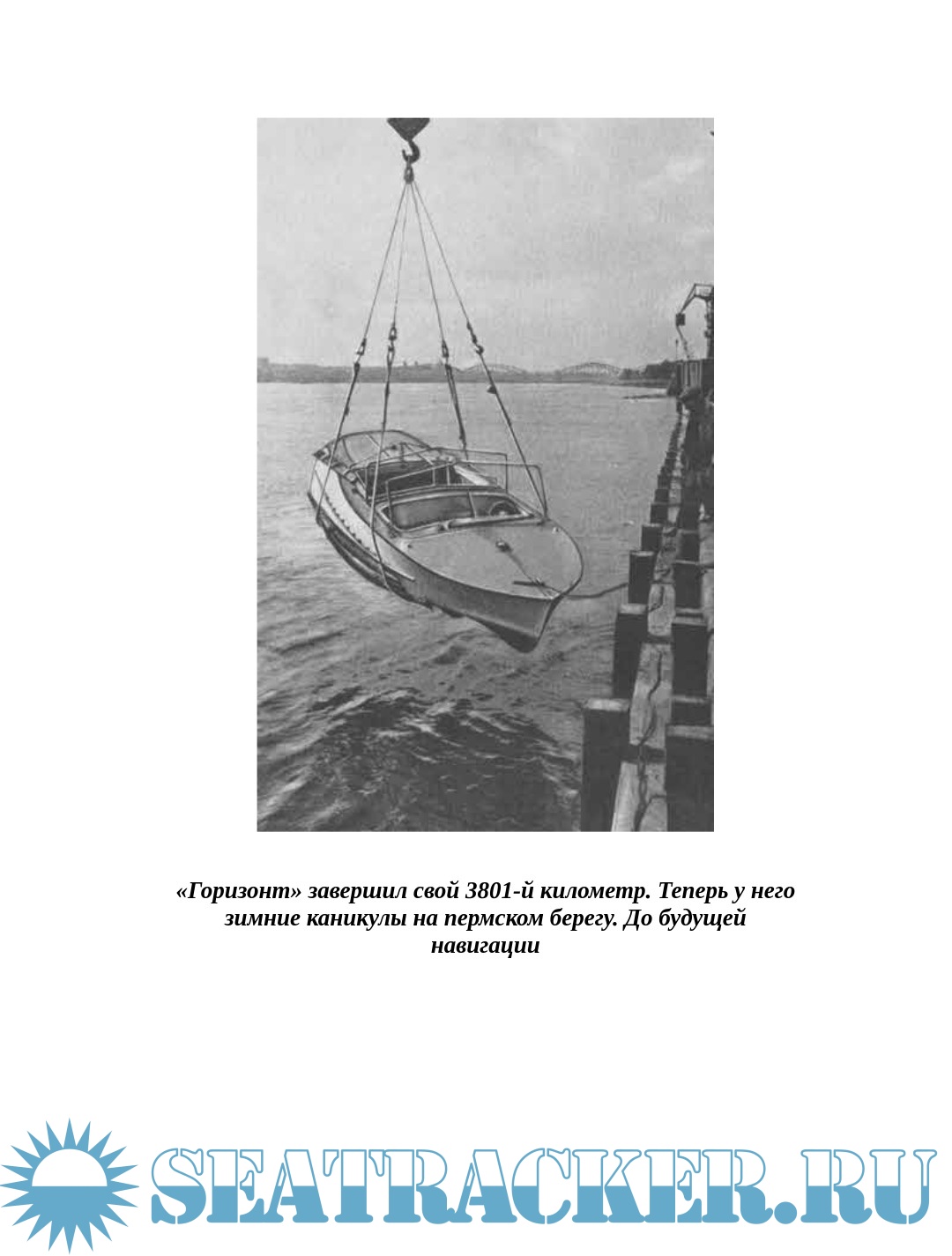 Журналист Б. Базунов и инженер В. Гантман совершили его за 45 дней на катере «Горизонт» через Ладожское озеро, систему шлюзов Волго-Балта, Рыбинское водохранилище, по рекам Волге и Оке.