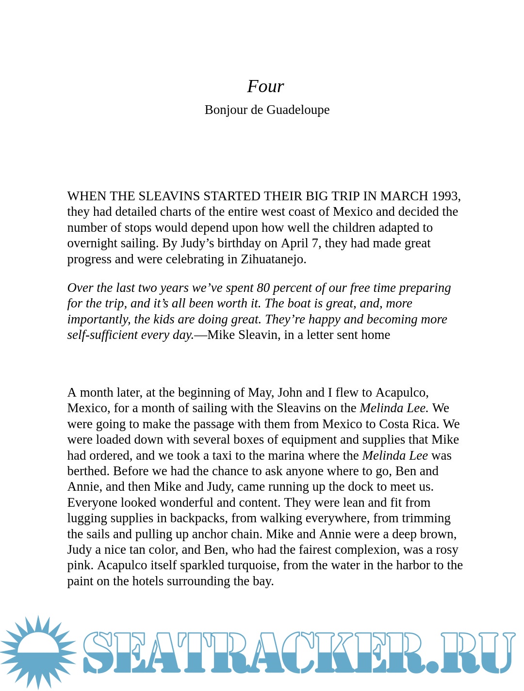 In 1993, Judith and Michael Sleavin and their two children set out to sail around the world. Three years into their incredible journey, a nearby freighter altered its course by a mere ten degrees-and everything changed...