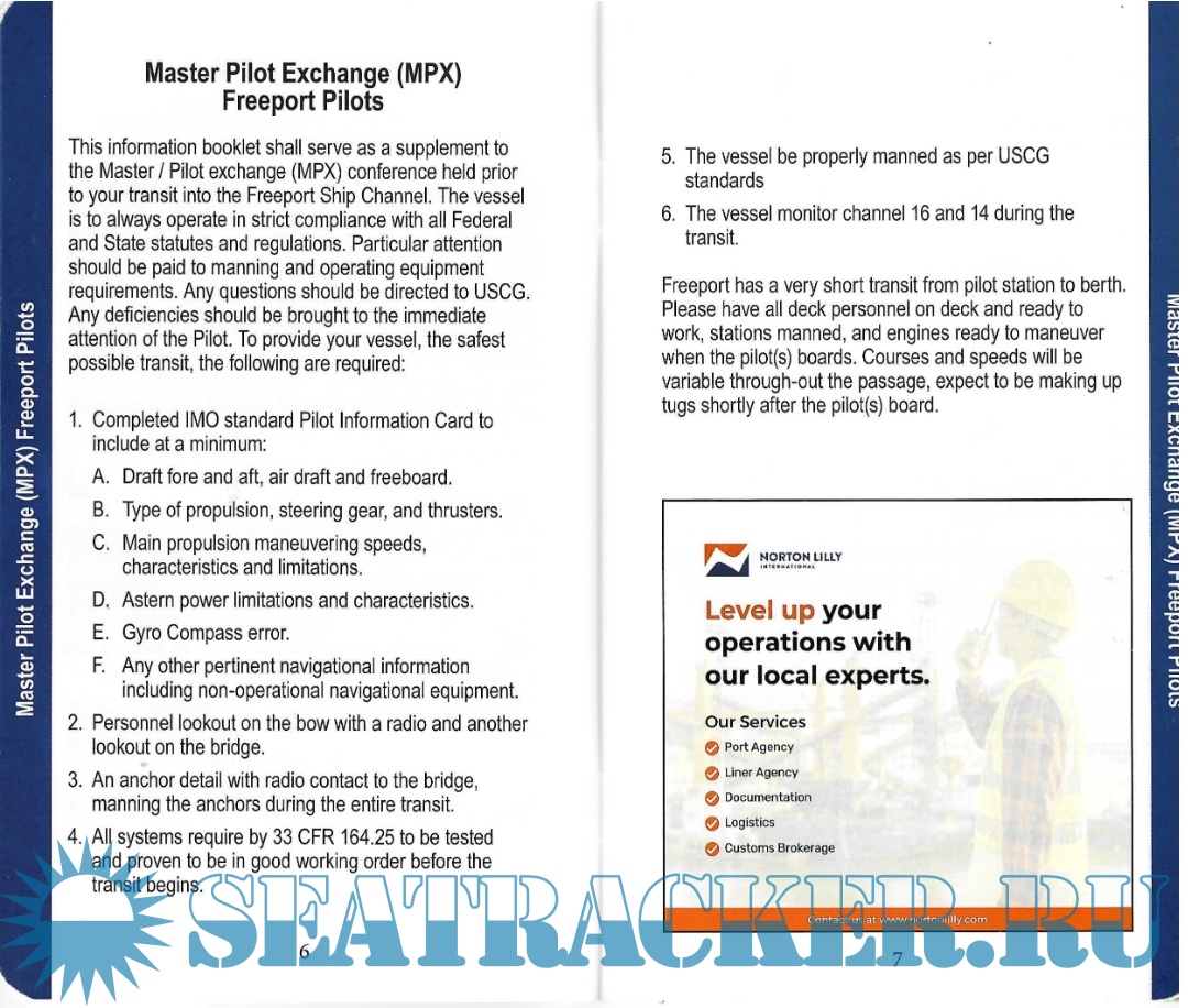 Year: 2025 Language: English Author: Brazos Pilot's Association Edition: 26th Format: PDF Quality: Scanned pages Pages count: 39 Description: For more than a century the Brazos Pilots have served the citizens of Brazoria County by ensuring safe and efficient transportation of foreign commerce traversing the Brazos River. Our mission is to use our expertise in ship handling, gained over the last century, and combine it with the latest in electronic navigational tools to make each vessels transit as safe and efficient as possible. We will represent the State of Texas and protect her pristine and ecologically sensitive marine habitats by providing guidance and developing safe maritime practices. We will be a bridge connecting people, companies, governmental agencies and international commerce to Texas. We will work in coordination with our port partners to create a vibrant commercial port where international commerce can grow and Texas companies can succeed.