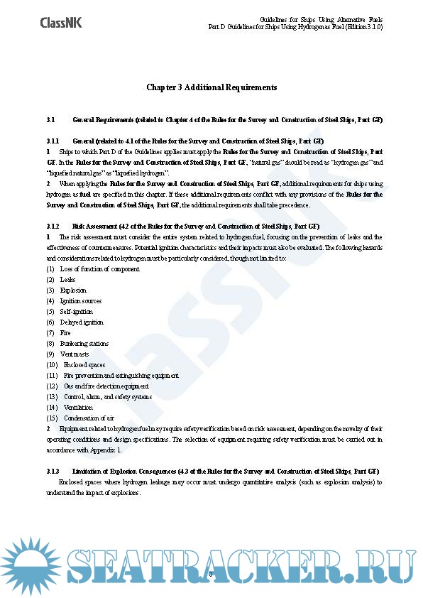 Guidelines for Ships Using Alternative Fuels (Edition 3.1) (Apr. 2026)6.8MB : - Part A Guidelines for Ships Using Methyl/Ethyl Alcohol as Fuels (Edition 3.1.0) (Apr. 2026)1.0MB - Part B Guidelines for Ships Using LPG as Fuel (Edition 3.1.0) (Apr. 2026)0.6MB - Part C Guidelines for Ships Using Ammonia as Fuel (Edition 3.1.0) (Apr. 2026)1.8MB - Part D Guidelines for Ships Using Hydrogen as Fuel (Edition 3.1.0) (Apr. 2026)0.3MB - Annex 1 Alternative Fuel Ready (Edition 3.1.0) (Apr. 2026)0.3MB