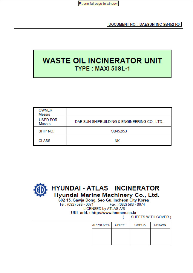 Description: INSTRUCTION BOOK FOR W. O. INCINERATOR TYPE : MAXI 50SL-1 HMMCO Hyundai Marine Machinery Co., Ltd. Page 8