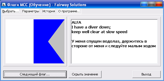 Небольшая програмка для изучения флагов МСС. Рассчитанная для первокурсников морских учебных заведений. Работает как в тестовом режиме так и в режиме обучения.