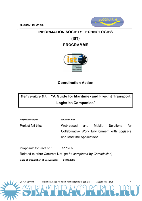 Year: 2005 Language: english Author: Dr. F A Schmidt Genre: Guide Publisher: Fraunhofer Institute IFF/FhG Format: PDF Quality: eBook Pages count: 273 Description: This document provides the “Guide for Maritime and Freight Transport Logistics Companies”. It addresses the legislative and regulatory instruments affecting processes and activities related to freight transport logistics along the route of the planned supply chain from the Northern Baltic via North-West Europe and the Mediterranean and South-East Asia to China. The findings are not exclusive to this route but affect all international, intermodal/multimodal supply chains.