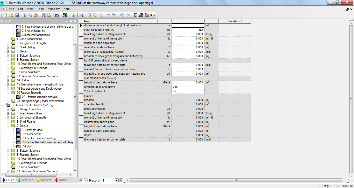 In addition you can calculate scantling requirements for the hull structures of various ship types using the program GL Rules ND.