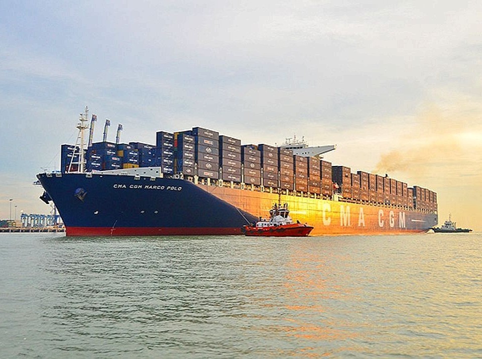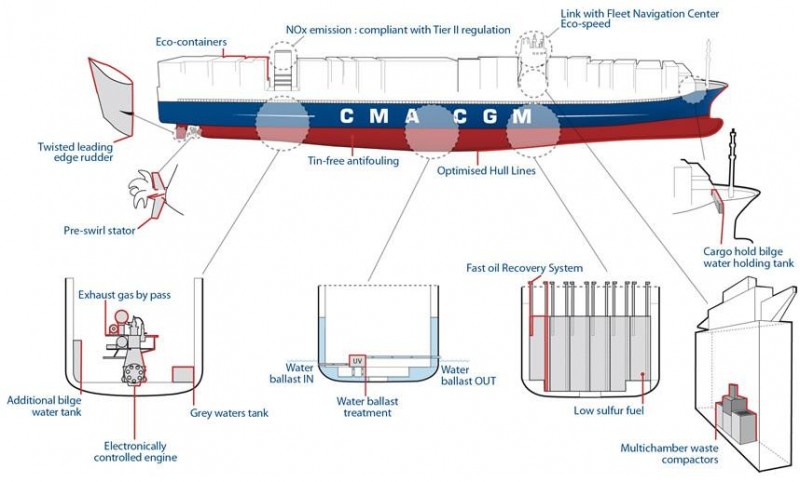 Its the first in a series of three new 16,000 TEU container ships, for the CMA CGM group on the Asia-Europe lines. Built by Daewoo Shipbuilding & Marine Engineering Co Ltd, it is almost a quarter of a mile long.