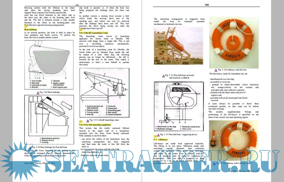 Year: 1996 Language: english Author: SEE-BERUFSGENOSSENSCHAFT Genre: Manual Publisher: SEE-BERUFSGENOSSENSCHAFT Edition: 3 ISBN: - Format: PDF Quality: eBook Pages count: 137 Description: Nine years have passed since the revision in 1986 of the manual for lifeboat training. The basis for the revision then was amongst other things the new chapter III "Life Saving Appliances and Arrangements" of the 1974 International Convention for the Safety of Life at Sea (SOLAS). Since then significant innovations have been introduced by the coming into force of changes to chapter III and on 1 February 1992 of a totally new chapter IV "Radiocommunication". These deal principally with life saving appliances using radio technology. 1992 saw the appearance of the first edition of the firefighting training manual. Since then there have been significant changes in maritime navigation in this field also. In particular structural fire protection was improved by changes and additions to the SOLAS convention. A revised version of chapter 11-2 of the convention which is applicable to this effect came into force for all ships the keels of which was laid down on or after 1 September 1984. Ten years later the major part of the German merchant fleet already complies with the new regulations. Furthermore there has been a development, unimaginable a few years ago, of crews getting smaller with ships becoming larger. Around 1980, a general cargo ship in world wide international trade would displace about 10,000 GRT, had a propulsive power of 7000 to 8000 kW and a crew of 30 or more. Today's container ships have a gross tonnage up to 50,000 and 35,000 kW propulsive power. The installed generator output is about 10,000 kVA. According to the manning scale, ships of this size are to be operated with a standard crew totalling 22. This may be reduced to 14 in the case of multipurpose crews. However in the case of very large ships this means that the crew numbers reach that limit below which setting up the firefighting organisation on board in accordance with the principles laid down in the current manual for firefighting training and the 1988 edition of the guideline for drawing up muster lists is no longer possible without making cuts. The "Manual for Ship Safety Service Training" introduced herewith, which replaces the two manuals respectively for lifeboat training and firefighting training, was therefore totally revised and matched to current technology as well as current legislation and standards. It is intended as the basis for the initial training and the continuation training on board and in the shoreside training establishments, and also as reference book for the practitioner. The manual is at the same time intended to stimulate repeated critical examination of the conditions on board every ship, and familiarisation with any existing deviations due e.g. to the numbers and composition of the crew, or to technical or operational peculiarities of the vessel. Publications such as this gain and retain their relevance by virtue of the continuous review based on experience gained in the course of the regular exercises on board and from emergencies. Critical comments from experiences at sea are therefore always welcome. At this point we wish to thank all those who have contributed to the manual most sincerely for their valuable contributions. Sincere thanks are also due to those who helped with the procurement of the illustrations and the technical information. Hamburg, February 1996 See-Berufsgenossenschaft Note On every ship, the operating instructions for all appliances and installations on board are assembled in an orderly manner for the ship safety service and are available to the crew in a generally accessible place. Together with a copy of this manual they constitute the internationally required training manual in accordance with Regulation III/51 of the SOLAS Convention. Additional info: This Manual Comprises the Training Manual (SOLAS Regulation III/51) and the Survival Manual (IMO Resolution A.657 (16))