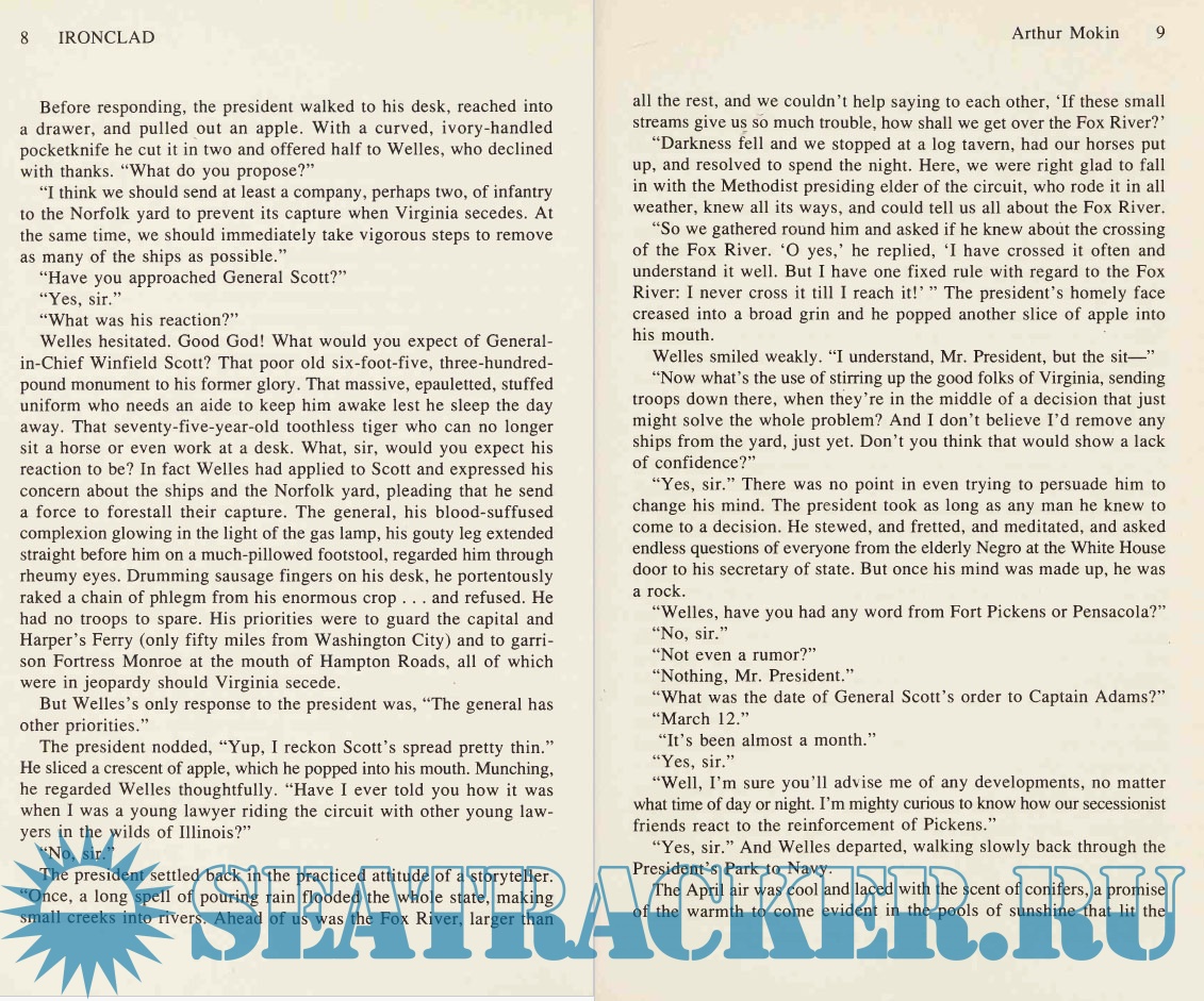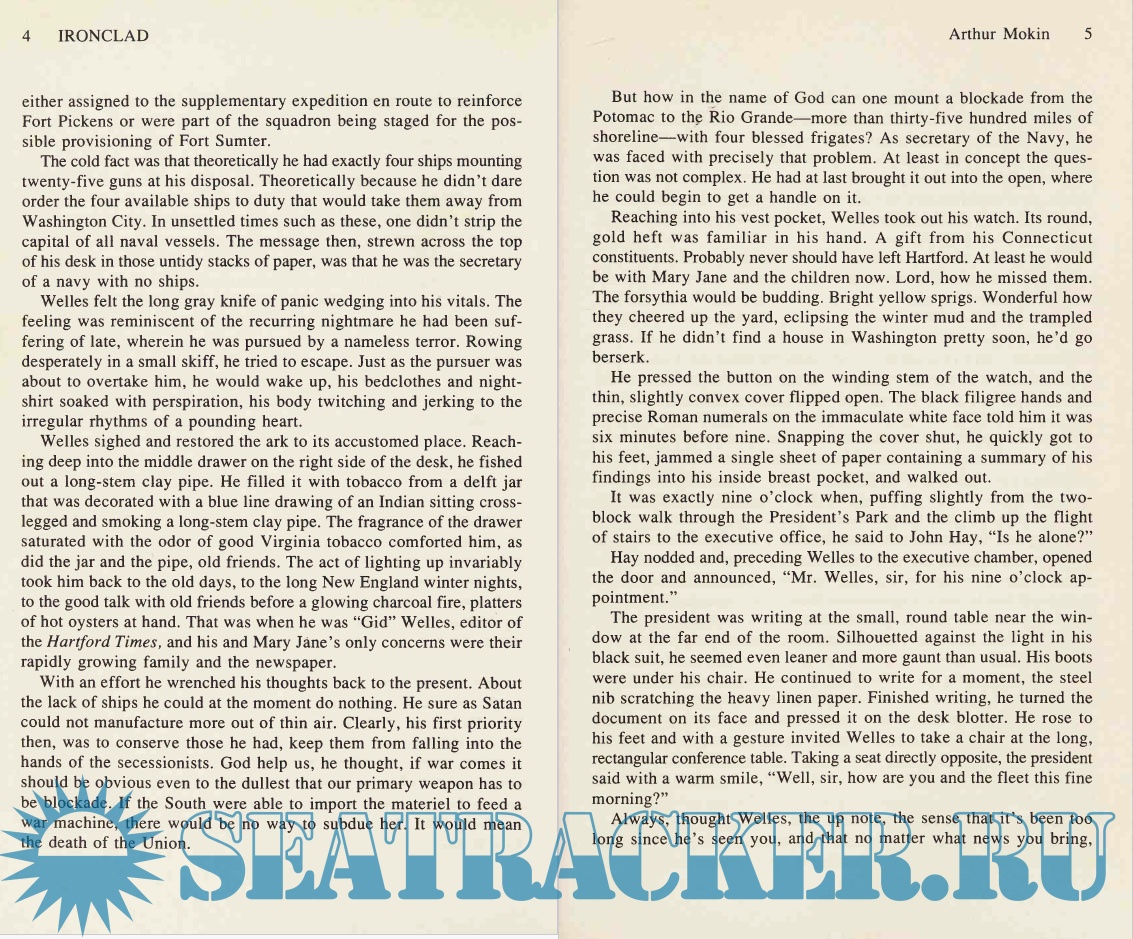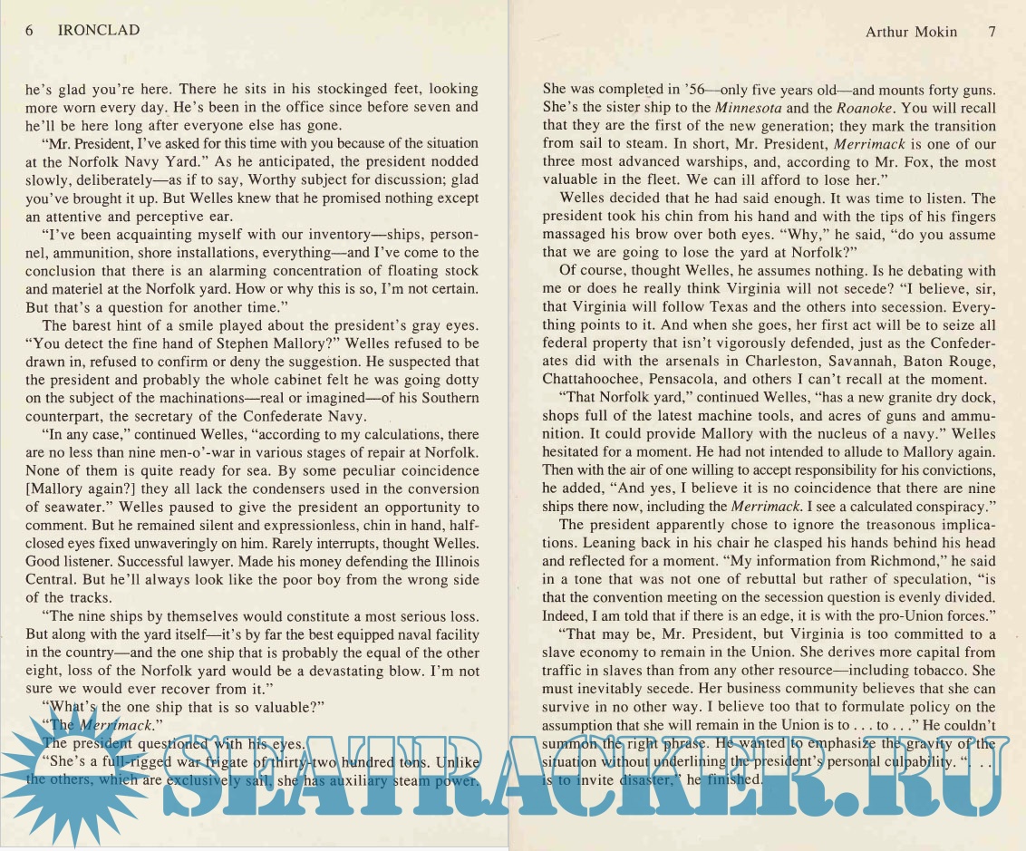 Description: The narrative begins on April 6, 1861. We meet an anxious Gideon Welles, Secretary of the U.S. Navy. He fears war is about to break out and is concerned that the Confederates will confiscate units of the U.S. fleet in southern ports. He is particularly concerned about the recently built USS Merrimack, one of the few steam-powered ships in the navy. On April 12, the Confederates fire on Ft. Sumter and the long, devastating war begins. Abe Lincoln and his cabinet realizing the south has no industrial capacity and that it plans to import all weaponry and materiel in return for cotton, settle on the stratagem of blockade. To his dismay, Welles learns that the Confederates have seized Merrimack and plan to refit her as an ironclad with which to bust the anticipated blockade. Welles also learns that a New York engineer claims to have designed an ironclad that can counter Merrimack and moreover, guarantees to build it in one hundred days. Each side sets about frantically to build its ironclad, Merrimack in Norfolk, and Monitor in New York. It is a race that can decide the outcome of the war since England, France, and Spain signal their intention to intervene on the side of the Confederacy if the integrity of the Union blockade cannot be maintained. On Saturday, March 8, 1862, Merrimack steams into Hampton Roads, anchorage of the U.S. blockading force, and the confederate ironclad decimates the Union fleet of wooden ships. The following day Monitor steams onto the scene, and the epic battle of the first ironclad warships begins; it proves to be the most critical naval engagement of the war, and one that renders the wooden navies of the world obsolete.