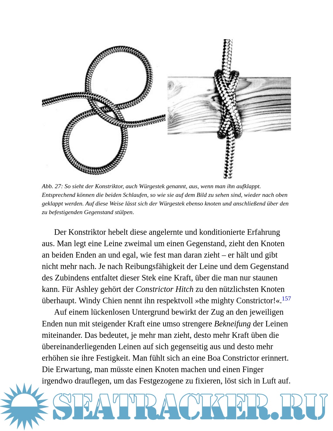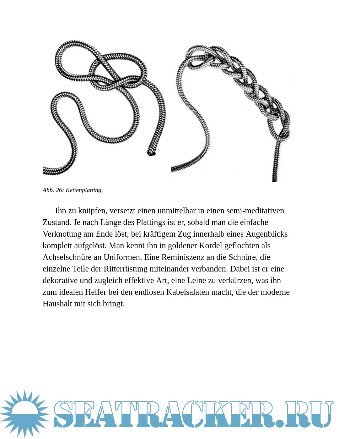 Year: 2023 Language: German Author: Karg M.S. Genre: Manual Publisher: zu Klampen Verlag Format: PDF/EPUB Quality: eBook Pages count: 283 Description: Der Knoten – wir alle kennen und verwenden ihn. Doch kaum jemand weiß Genaueres über seinen Ursprung und seine lange Geschichte. Dabei verwandeln Menschen seit Tausenden Generationen mit dem Knoten einfache Leinen – ob Schnur, Strick oder Seil – in Werkzeuge, Symbole, Zeichen, Zierden oder Mittel der Magie. Einst unverzichtbarer Alltagsgegenstand, wird der Knoten in der Konsumgesellschaft zunehmend von Billigprodukten ersetzt – und bleibt doch das einzige Werkzeug der Vorzeit, das sich noch heute in jedem Haushalt befindet. Weder im Alltag noch in der Wissenschaft wird der unscheinbaren und zugleich hocheffektiven Technik des Knotens besondere Aufmerksamkeit geschenkt. Dabei wäre unsere Menschwerdung ohne den Knoten vermutlich nicht möglich gewesen. Michael Kargs Buch zeichnet die Menschheitsgeschichte mit dem Blick durch die Knotenbrille nach. Entstanden ist eine Hommage an das, was die Menschheit verbindet.