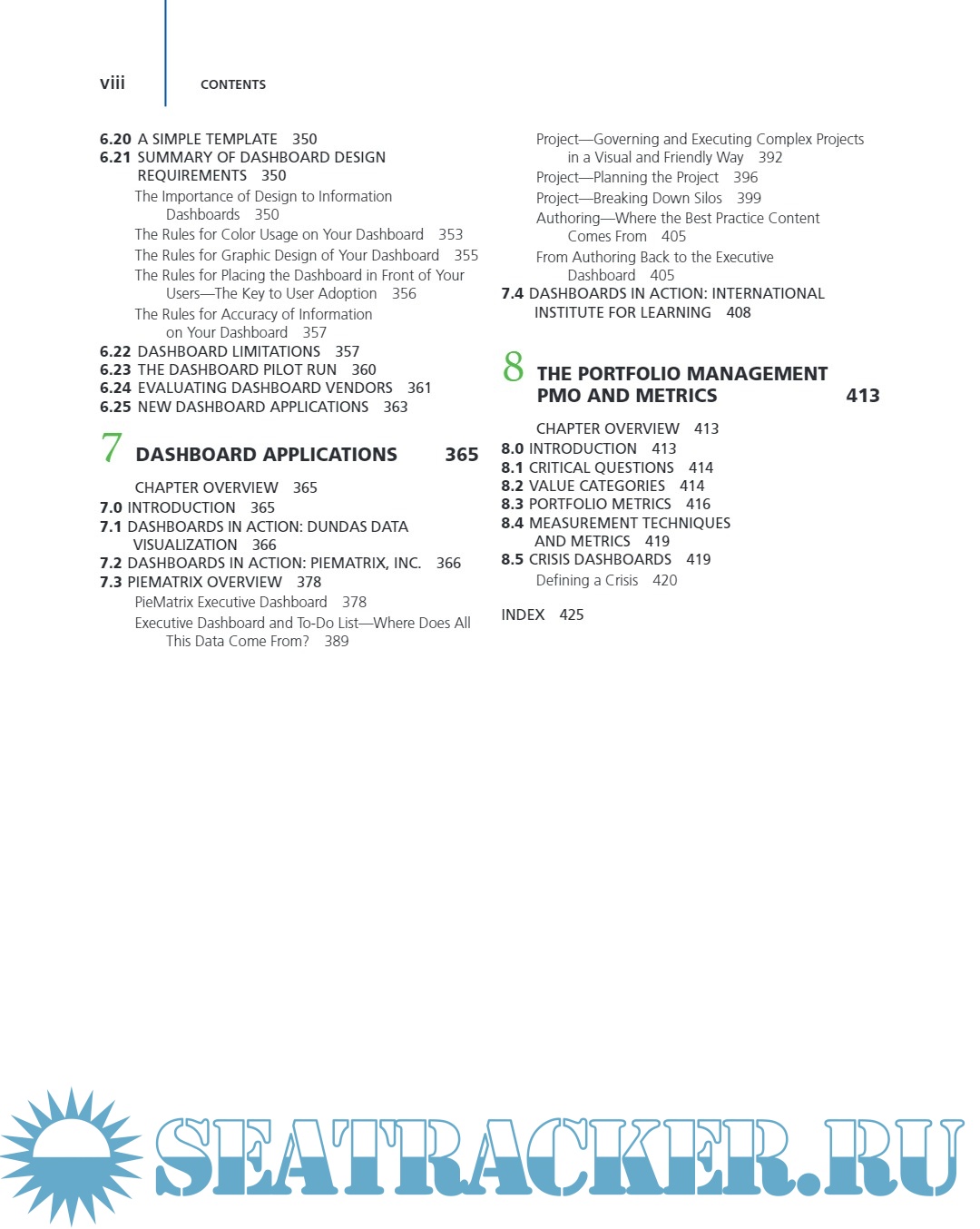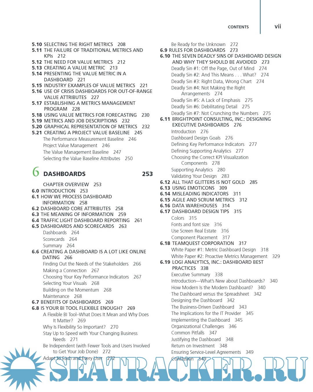 ■ Chapter 7 identifies dashboards that are being used by companies.