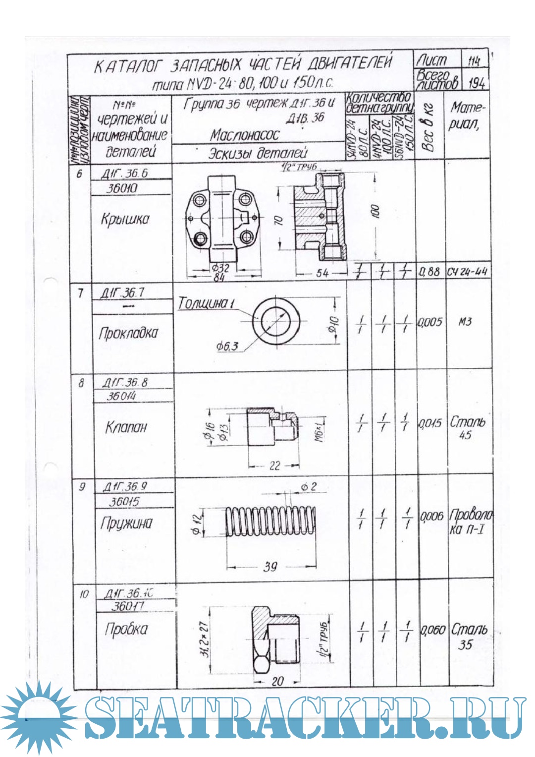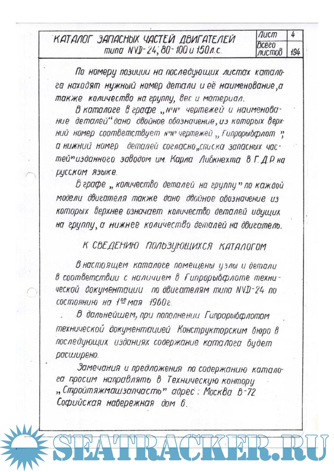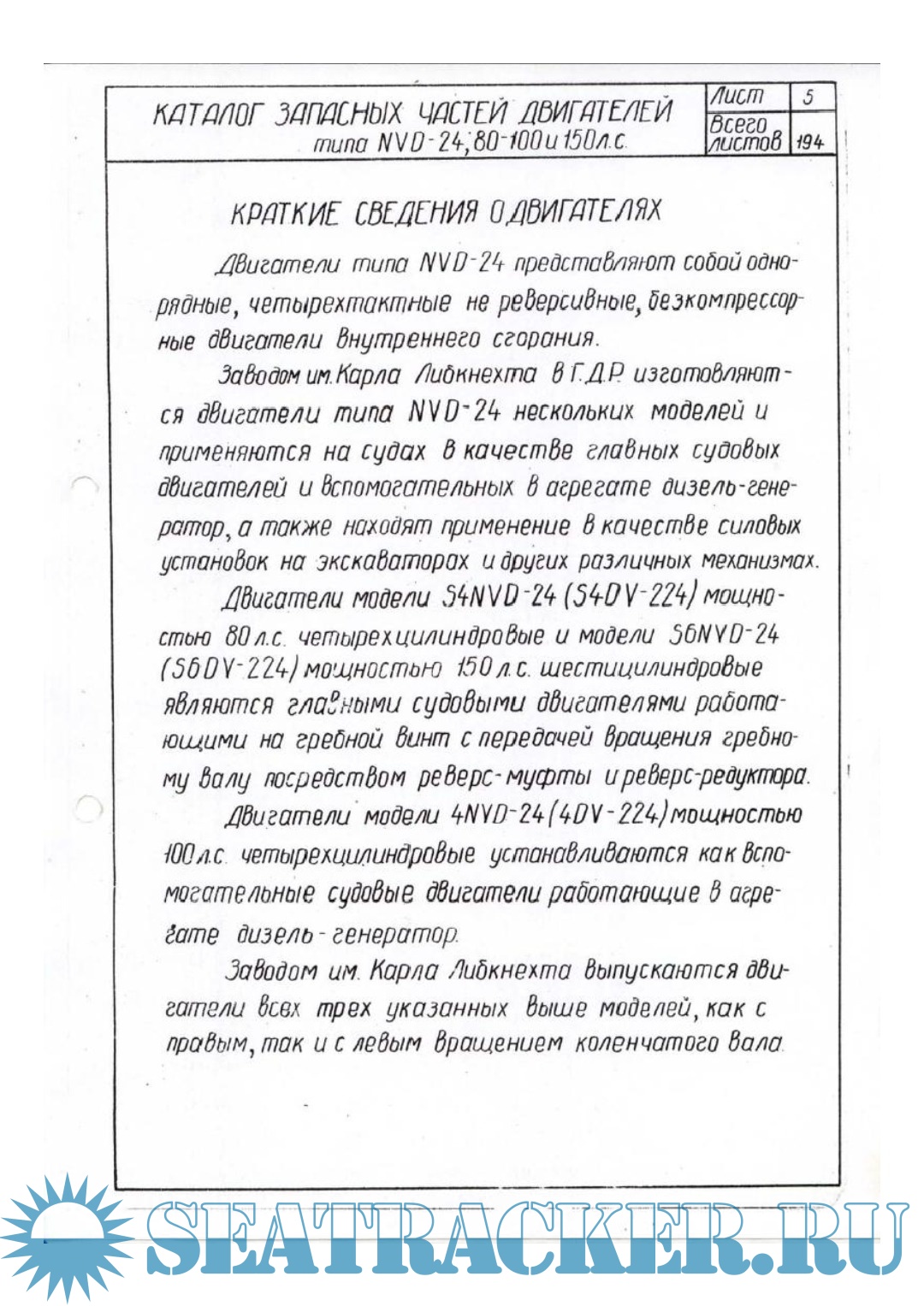 Каталог запасных частей двигателей типа NVD 24 (80, 100, 150 л.с.)