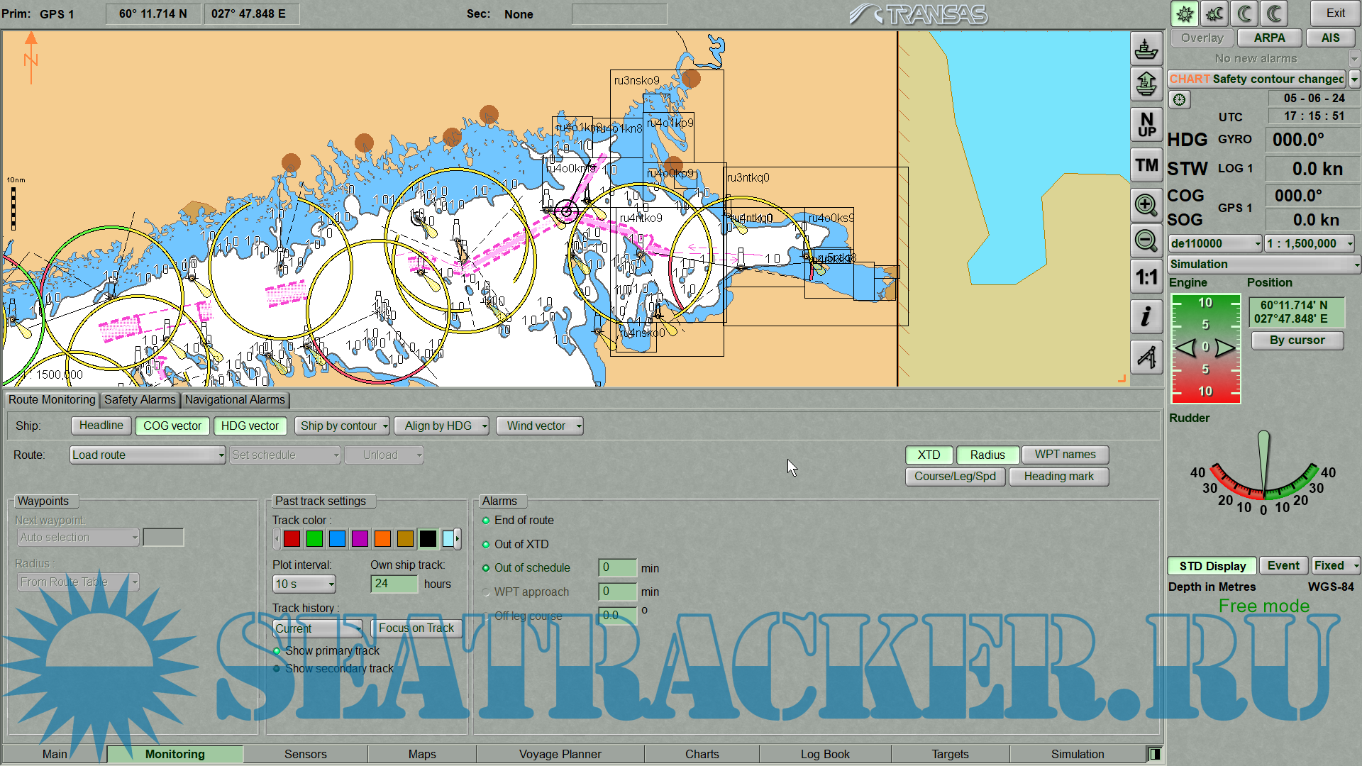 Description: The Transas Demo ECDIS is a free program developed to demonstrate the main ECDIS functionality, and for training purposes. It provides simulation of navigational data: own ship and target motion, radar pictures and ENC chart presets.The Transas Demo ECDIS also the preset scenarios that display full-scale navigational situation on the screen: nautical charts, radar overlay, routes, AIS targets and NAVTEX warnings. ECDIS Сomputer Based Training (ECDIS CBT) is developed in accordance with IMO Model Course 1.27. It is designated both for candidates for certifcation as ofcers in charge of a navigational watch and for experienced nautical ofcers and other persons with responsible duties in navigation work, such as pilots.
