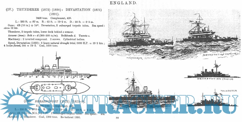 Брустверно-башенные броненосцы "Глаттон", "Девастейшен", "Тандерер" и "Дредноут" (1868-1908)