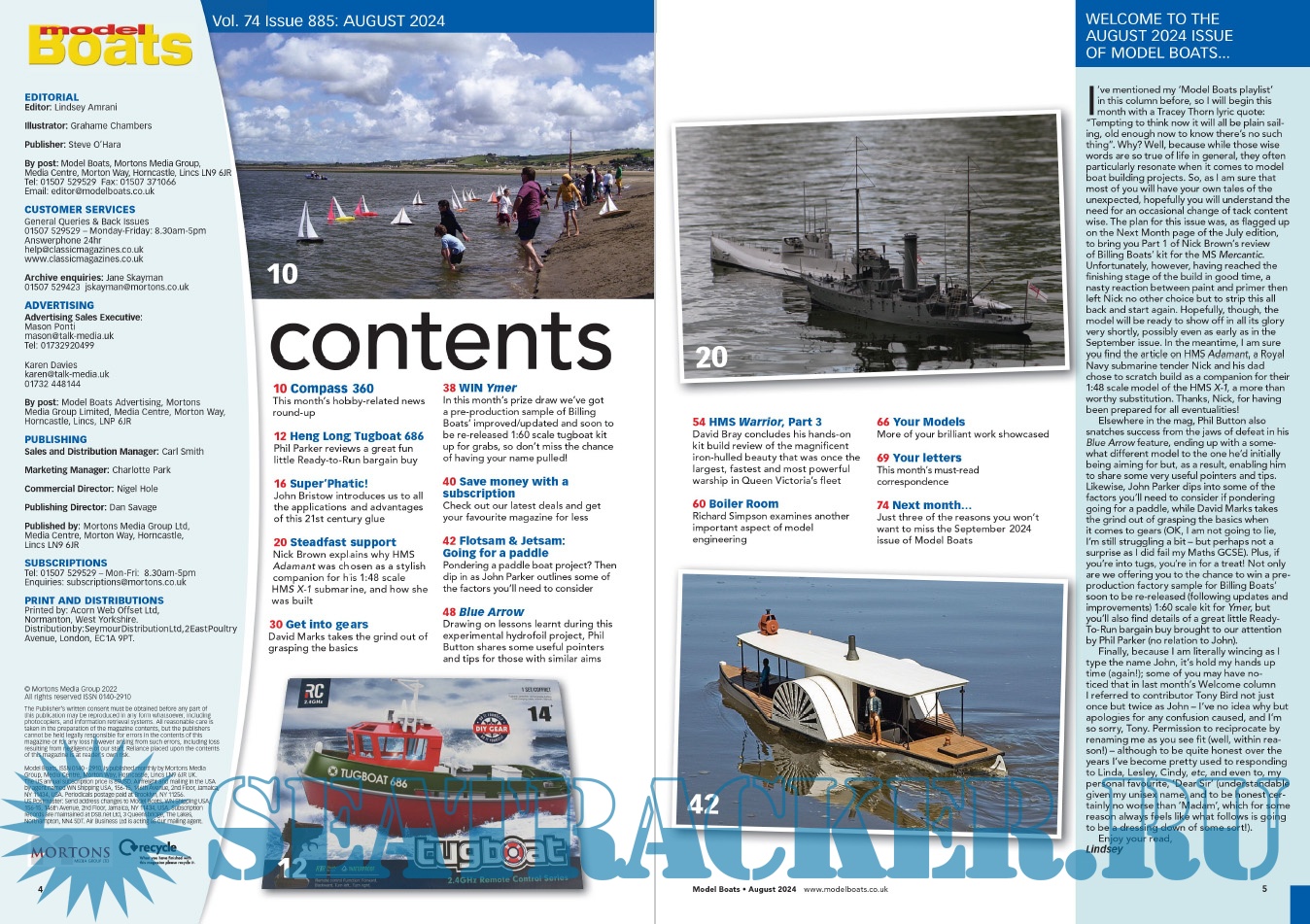 Description: Model Boats magazine is a practical and informative read for those with a love for the hobby. It covers the latest news and views from the various clubs and associations around the country, useful hints, tips and step by step guides for those interested in the art of constructing a model boat as well as tests and recommendations of new boats and tools. Floating along behind these are great special features examining in depth different models from narrowboat to destroyer!