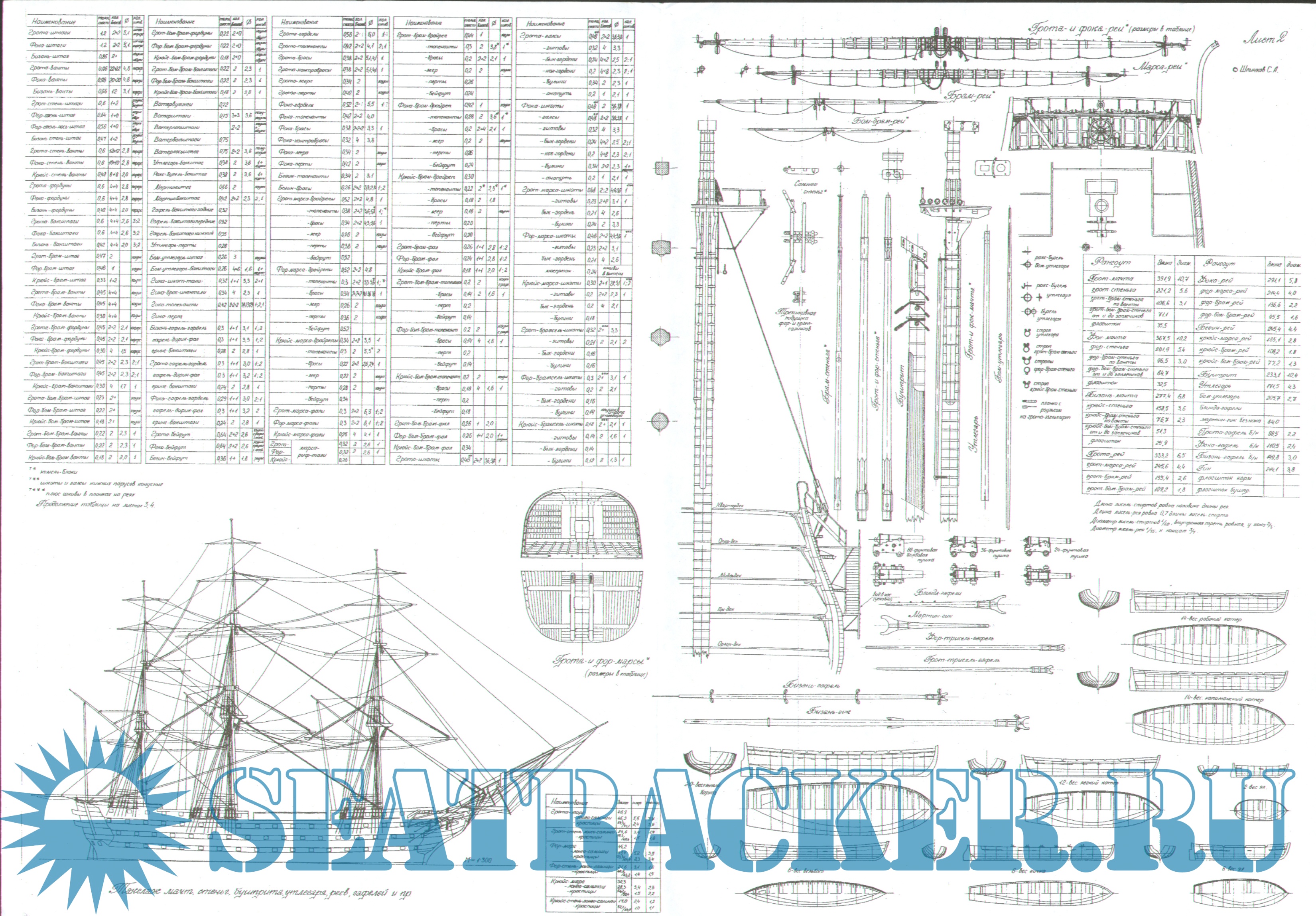 6 листов чертежей 120-пушечного русского линейного парусного корабля "Париж" 1849 год в масштабе 1:200Скриншоты