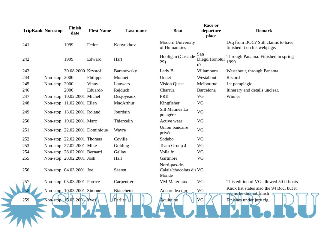 Description: List of sailors who completed a solo circumnavigation