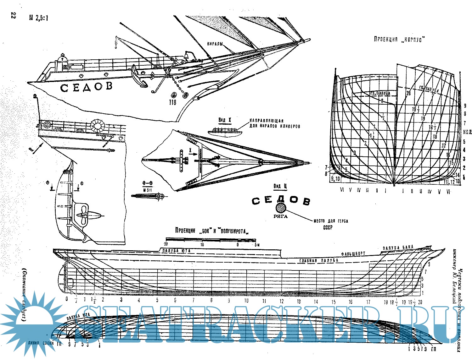 Описание: 7 листов чертежей барка "Седов" (Россия)