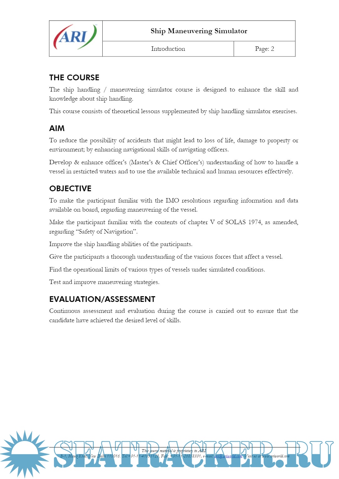 Description: The ship handling / maneuvering simulator course is designed to enhance the skill and knowledge about ship handling.