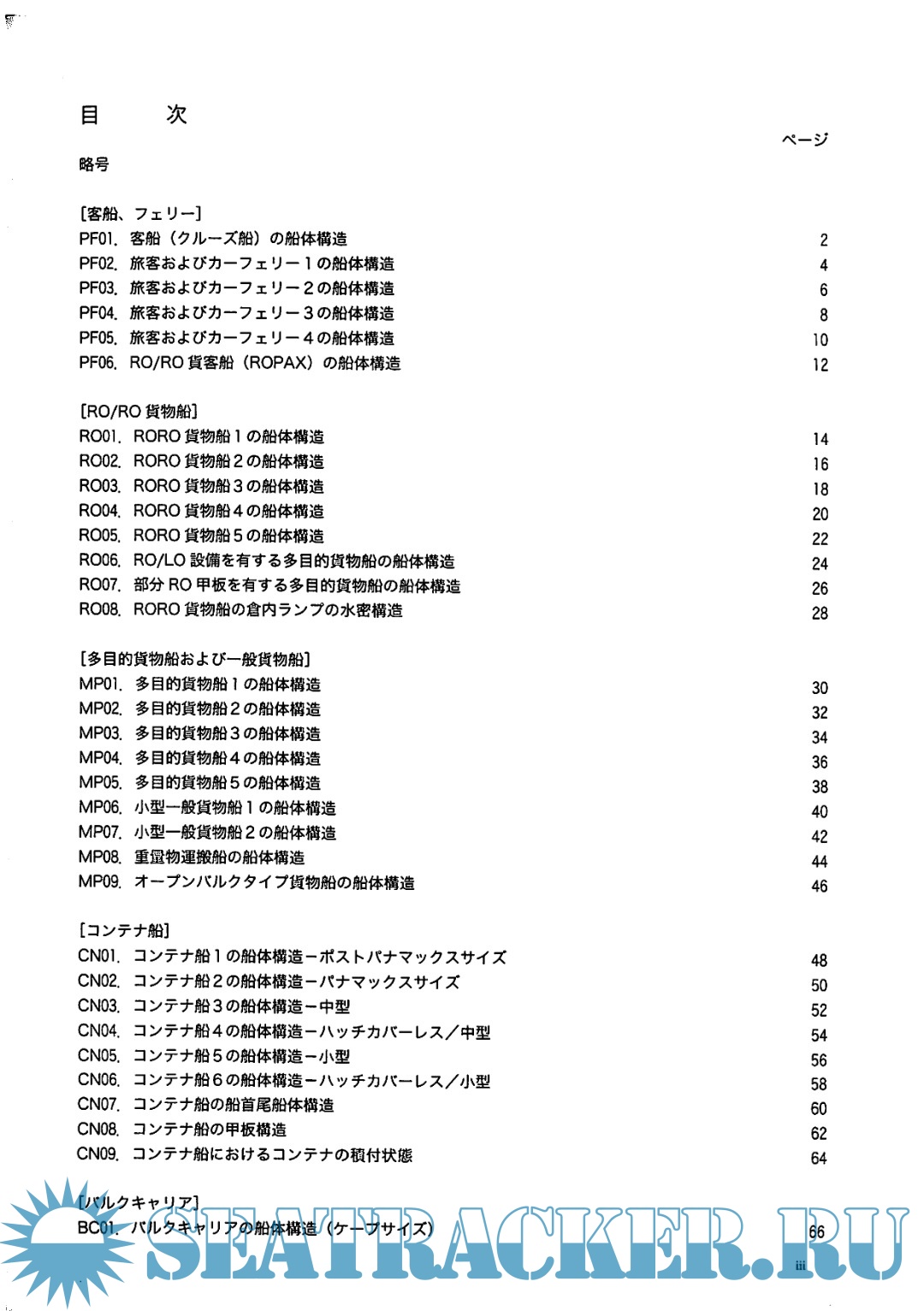 The general arrangements,ship sizes and photograps of the many existings ships have been published in the ship`s technical joumals, books and others,and they were referred at the drawings of illustrations. However, l have never consciously referred any structural plan of the existing ships at the drawings of the illustrations except the published data. Therefore,all the hull structures shown in this book are of original based on my experience.
