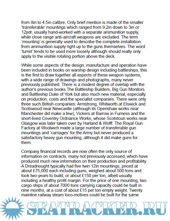 Year: 2024 Language: English Author: Ian Buxton Genre: Historical Publisher: Seafort Publishing Format: PDF Quality: eBook Pages count: 704 Description: Heavy gun mountings dominated the design of larger warships, on account of their size, weight, protection and cost. In the 1890s, British gun mountings developed rapidly with new gun technologies (wire winding, cordite) and the rise of the two major ordnance companies, Armstrongs and Vickers, producing large numbers of weapons for the Royal Navy and for worldwide export. But by 1960, aircraft and guided missiles had made the big gun redundant, so the period from 1890s to 1950s covering the two world wars is the most historically significant. The focus of this book is on the larger mountings and those fitted in the larger ships – the massively engineered ‘non transferable’ mountings, whose complexities and associated magazines took up a huge volume of the ship, unlike the smaller calibre ‘transferable’ mountings mostly bolted to the deck. Such mountings could weigh over 1000 tons, take two years to build and make up a quarter of the cost of a battleship. Although they existed in many variants, there were only about forty basic mountings from 4.5in to 18in calibre fitted to the majority of the RN’s larger ships so these take up the bulk of the book. For each, well illustrated handbooks with coloured plates were produced, but are largely inaccessible to the public, so about 50 of these highly detailed drawings are reproduced at large scale. The smaller mountings and the guns themselves each have a separate chapter. Although the impact of the book is largely visual, there is an expert account of the design, construction and installation of such mountings, and their manufacturers, supported by a range of internal and close-up photographs. The reference value of the work is enhanced by a comprehensive table of mountings and their characteristics, plus a list of all the mountings made by Vickers of Barrow between 1900 and 1950. Providing easy access to so much rarely seen material, this handsome volume will appeal to modelmakers, ship enthusiasts and technical historians.