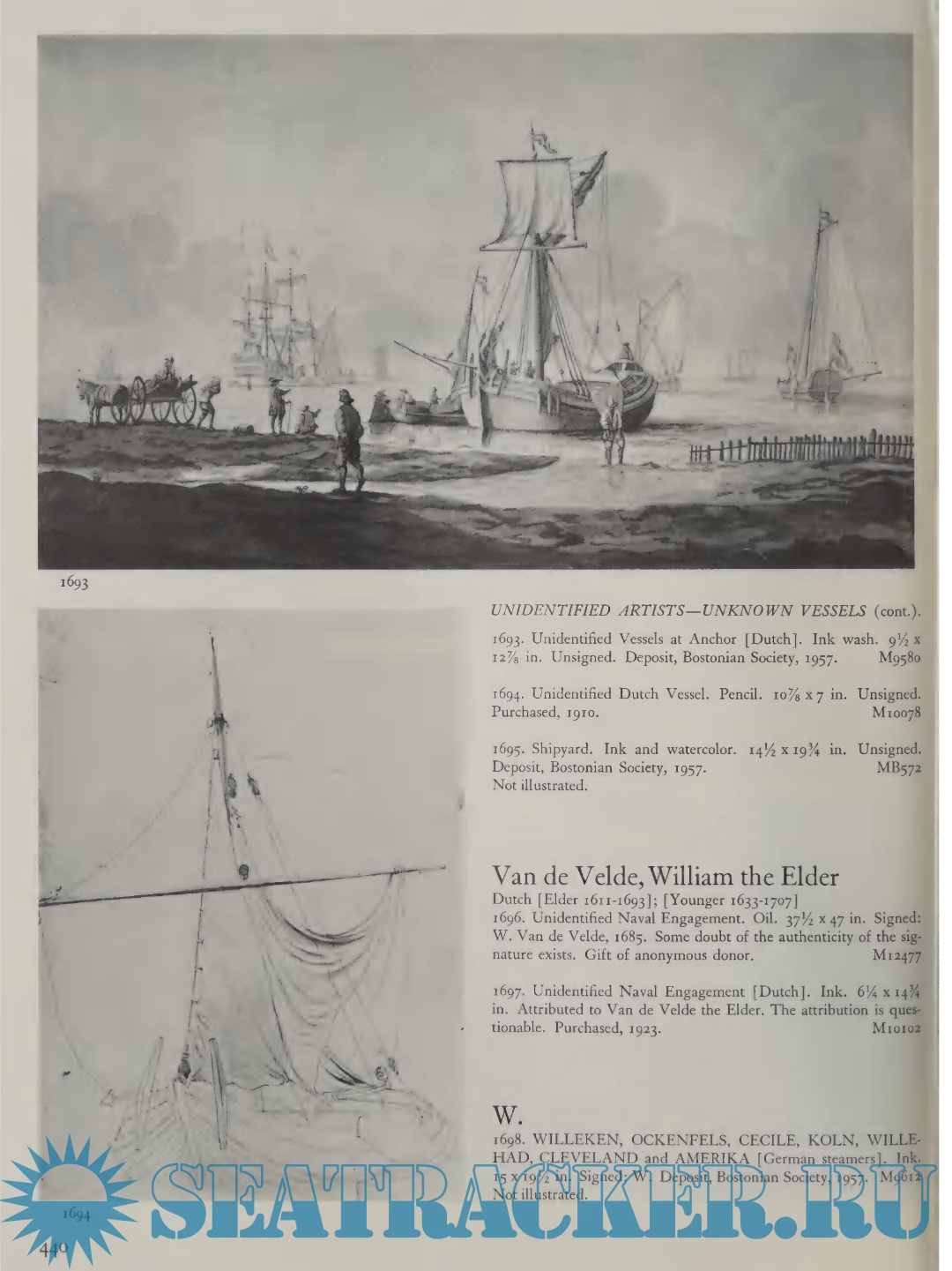 Year: 1981 Language: English Author: Brewington M.V. @ D. Genre: Catalog Publisher: Peabody Museum of Salem Format: PDF Quality: eBook Pages count: 692 Description: This revised edition of Marine Paintings and Drawings in the Peabody Museum is an attempt to tabulate those inconsistencies that have been found thus far in our research. Due to the nature and history of marine painting, particularly the lack of information for early artists, we are sure that as time passes even more corrections will surface.