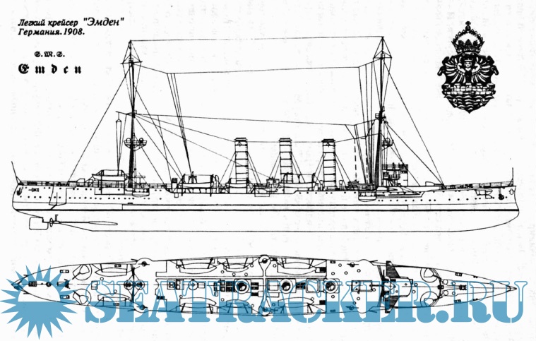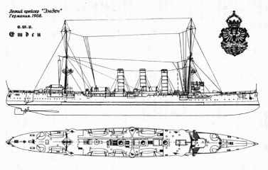 Описание: Крейсер «Эмден» входил в состав германской дальневосточной крейсерской эскадры, которая базировалась на германский колониальный порт Циндао, расположенный в Желтом море. По плану войны он предназначался для крейсерских операций и уничтожения морской торговли вероятных противников в Восточной Азии. С объявлением войны «Эмден» приступил к выполнению возложенных на него операций, направившись к Цусимскому проливу, где судоходство было наиболее оживленным.