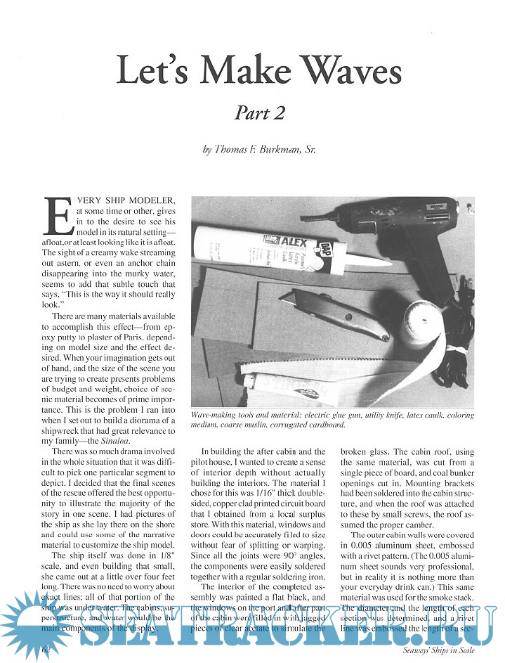 Year: 1994 Language: English Author: Scottie Dayton (Editor) Genre: Periodical publication Edition: 1994-5 Format: PDF Quality: Scanned pages Pages count: 77 Description: Seaway is the home port for Seaways Ships in Scale magazine, the leading workshop and research magazine for the ship modeler. In the magazine we explore all levels of modeling experience, all types of ships, all kinds of models, all historical eras and all construction materials