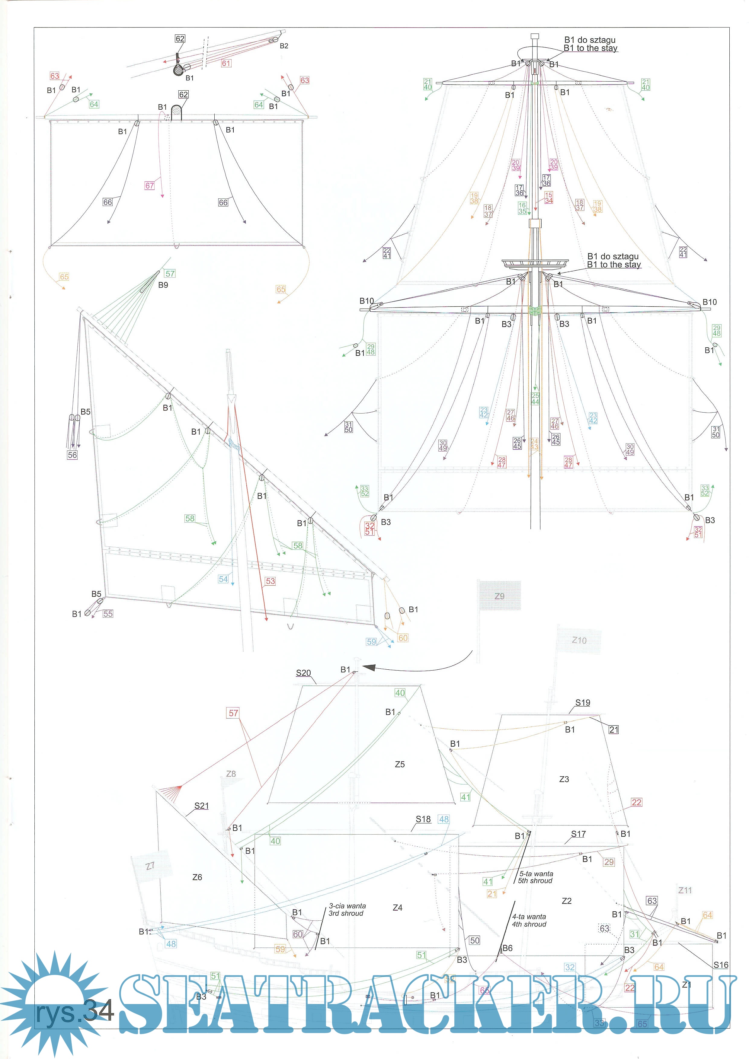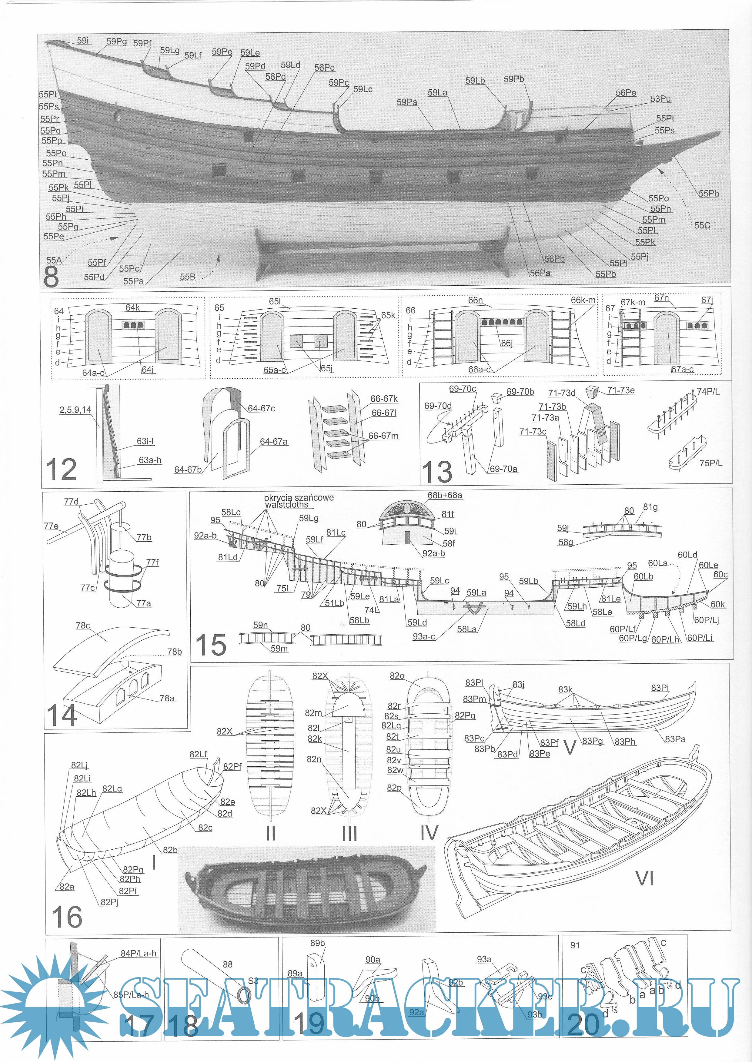 22 листа цветных выкроек и инструкций для изготовления бумажной модели польского галиона Wodnik (Meerman) 1623 годСкриншоты