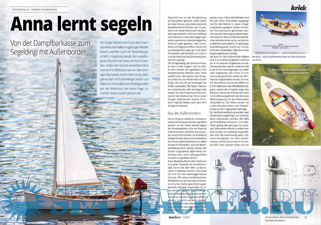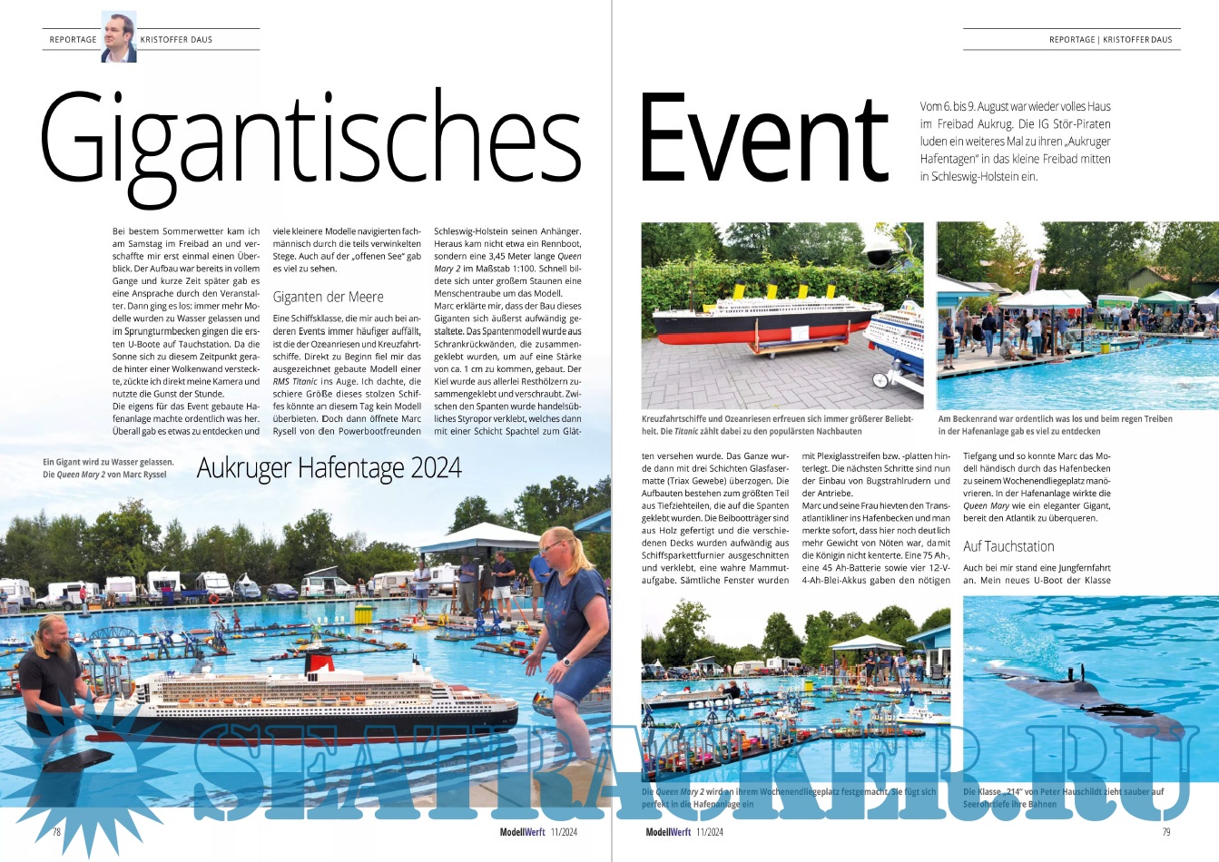 Year: 2024 Language: German Author: Eric Schafenrort (Redaktor) Genre: Periodical publication Edition: 2024-11 Format: PDF Quality: eBook Pages count: 84 Description: Das führende Fachmagazin für Schiffsmodellbauer. Egal ob Stand- oder Fahrmodell, ob kleines Segelboot oder gigantisches Kreuzfahrtschiff. Die Modellwerft informiert über Neuheiten, hilft mit Bautipps und fasziniert mit besonderen Reportagen.