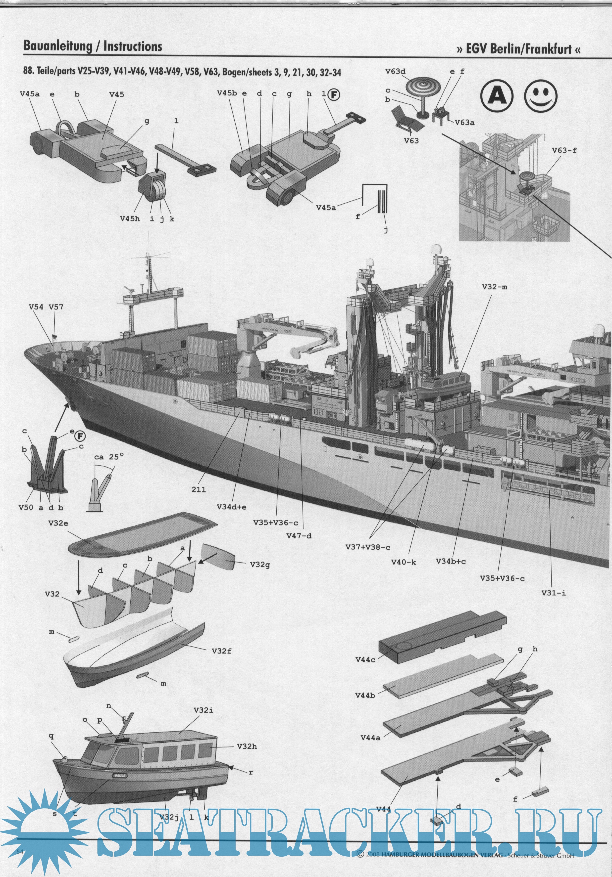 136 страниц цветных выкроек и описаний для изготовления бумажной модели военного корабля снабжения HMV - Berlin (Геомания) в масштабе 1:200